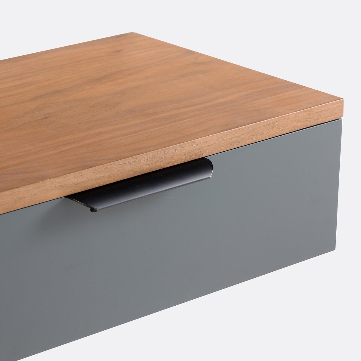 I’m a big fan of this floating Valga bedside unit - its slim, wall-mounted design keeps floors clear and adds instant modernity. The mix of matt grey drawer and oak-effect top suits Scandinavian, industrial or minimalist schemes, and the hidden drawer handle keeps the look clean. Styling couldn’t be simpler: a slim LED reading lamp or wall sconce above, a small potted plant or ceramic tray for odds and ends, and a couple of books neatly stacked. Because it’s off the floor you can tuck your charger and cables behind, keeping the surface clutter-free.