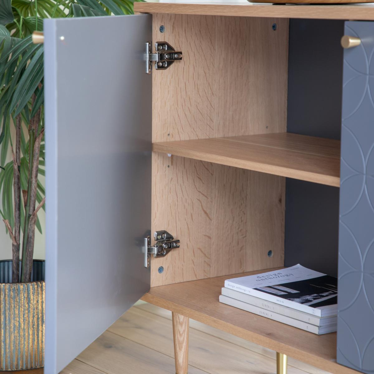 I love this sideboard for its sleek grey finish combined with the warm wooden accents, making it versatile for both modern and contemporary interiors. It works well in living rooms, dining areas, or even bedrooms where extra storage is needed without sacrificing style. Practical styling tips include layering with decorative trays or bowls on top, adding a mirror or artwork above for visual interest, and pairing it with minimalist ornaments or greenery to bring in some freshness. Its understated elegance means it can blend seamlessly into various colour schemes, acting as a functional statement piece.