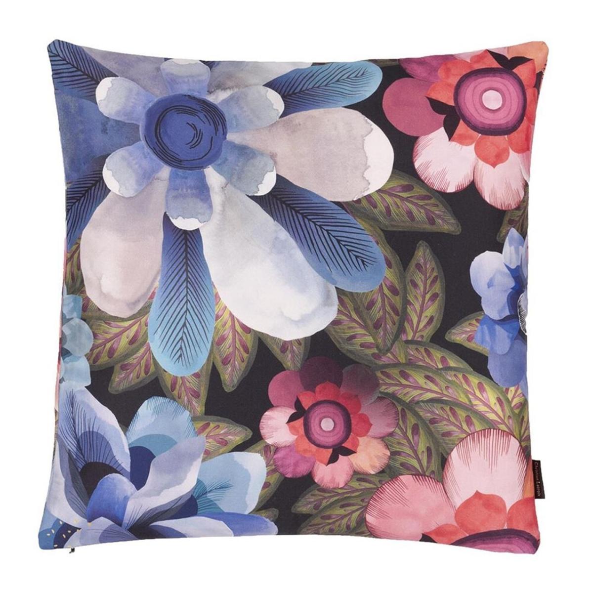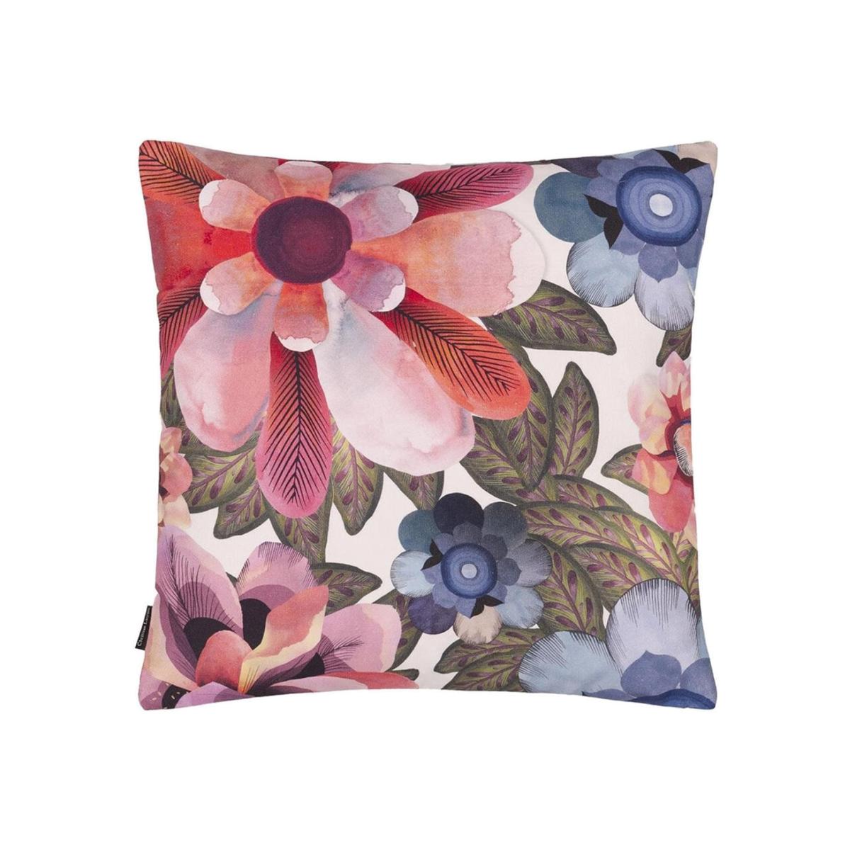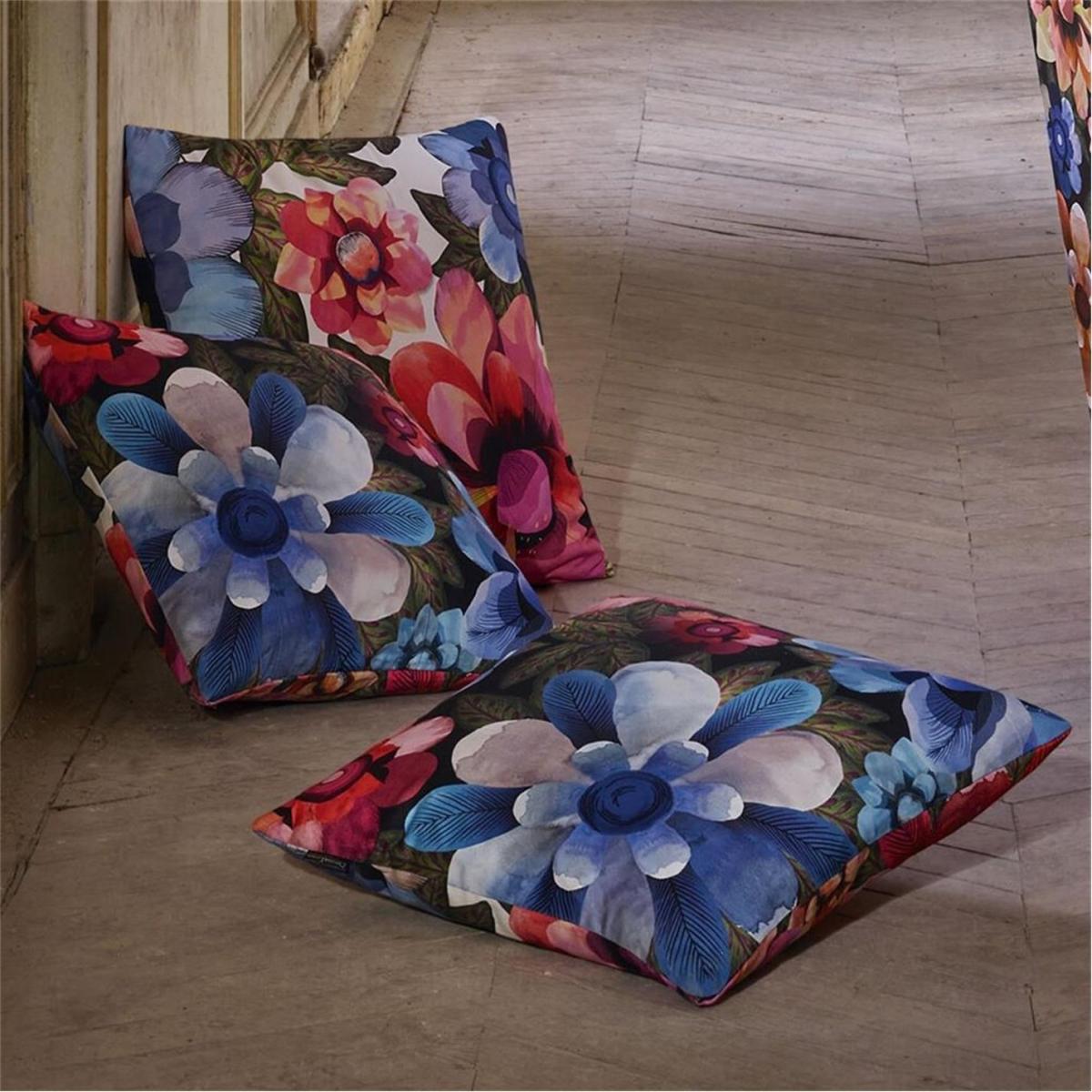 Christian Lacroix Maison has created a luxurious cushion featuring poppies and cosmos flowers arranged in a dense cluster. The flowers are presented in varying scales, creating a dramatic effect. The cushion's canvas is textured and digitally printed, while the reverse side is made of cotton satin. This stylish cushion is perfect for floral design enthusiasts who appreciate opulence. Christian Lacroix is the eponymous fashion house by the world-renowned French designer. Lacroix's designs combine luxury and insouciance. He prefers artisanal trades, fringe, bead, and embroidery. His work is characterised by a strong sense of colour, and patterns mix.