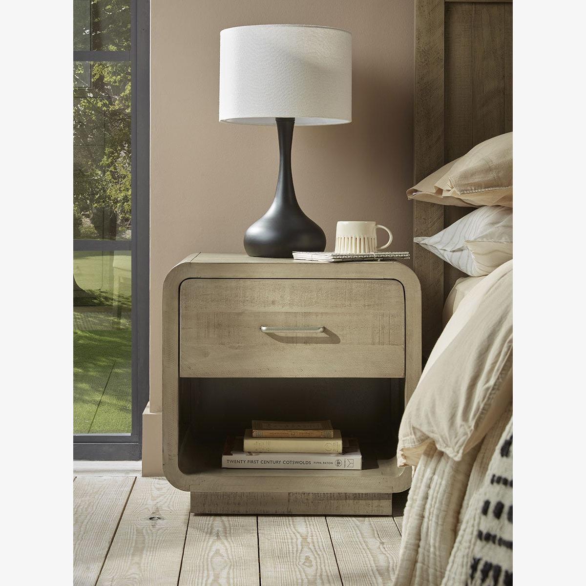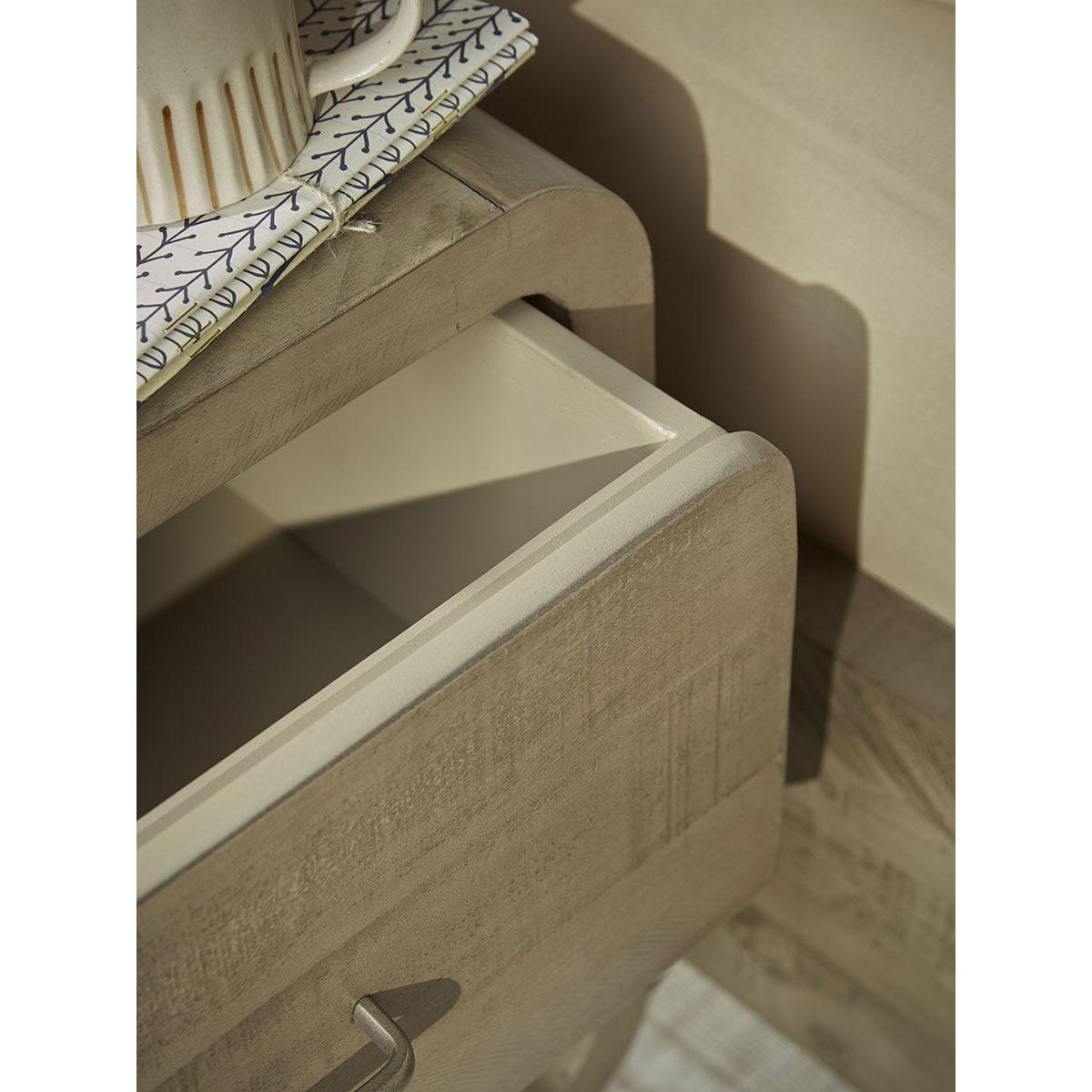 Soft rounded corners and a light washed pine define the beauty of our Valletta Bedside Table. With a drawer to store all of your nighttime essentials and a cubby hole to keep your bedside reading, thsi bedside table is finshed with a curved metal handle for a slightly retro effect which pairs wonderfuly with the softeness of the silhouette. Perfect for a room with a neutral and minimalist scheme, pair with our Valletta chest of drawers and bed.