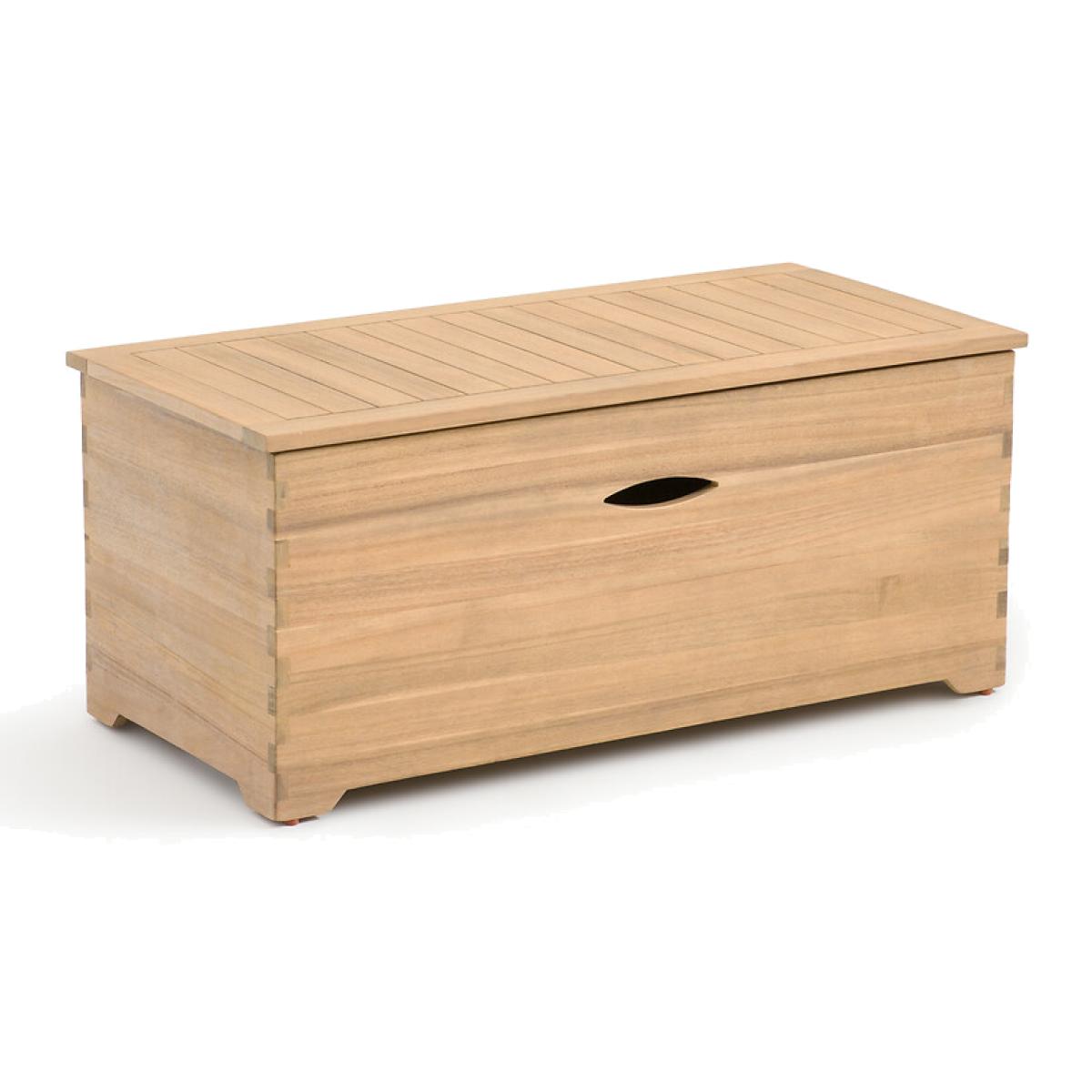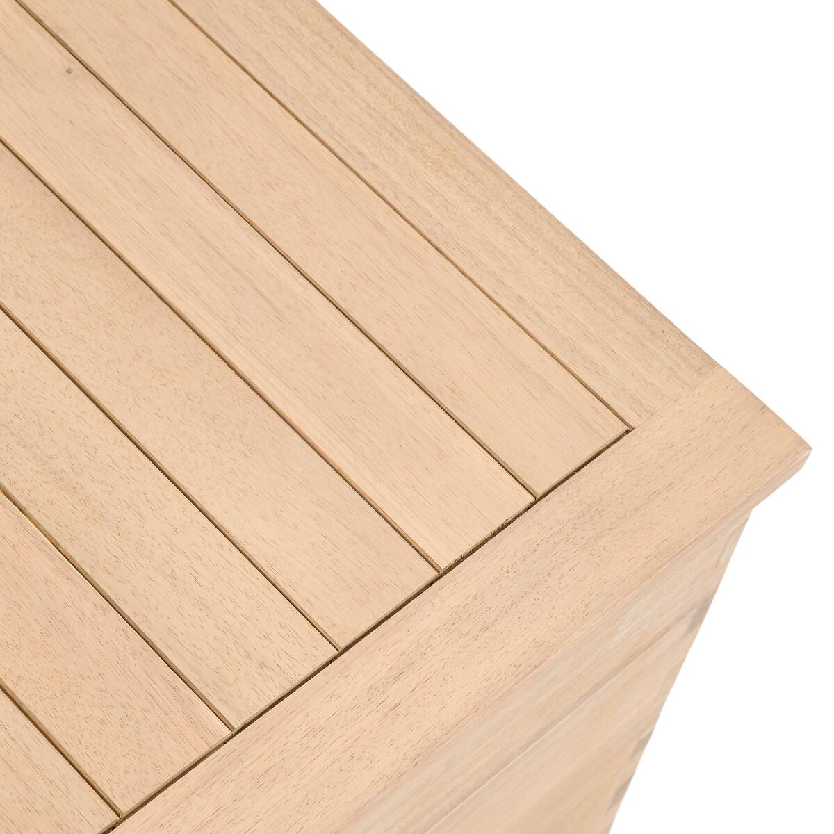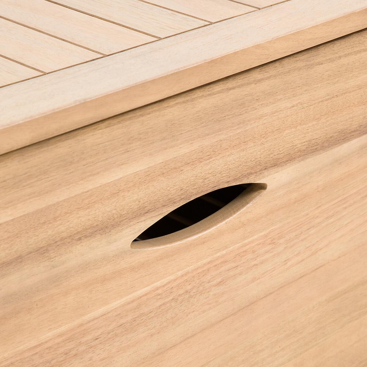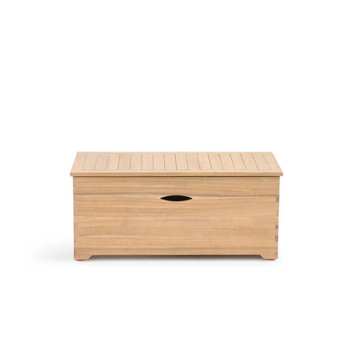 The Valora garden chest is ideal for storing and protecting cushions, throws, gardening tools or outdoor games... Made from acacia wood, it blends easily into any garden decor. It can also be used as a coffee table. Product Details • In FSC® certified acacia, oak-tinted oiled finish • 2 steel and aluminium cylinders for easy opening. Quality Info • Acacia is a wood that offers good mechanical properties (good resistance to insects and fungi) and is resistant to bad weather (alternation of dry and humid periods).Dimensions • Width: 93cm • Height: 40cm • Depth: 45cm • Inside: L88 x H35 x D40cm • Weight: 14kgDelivery:. This product requires assembly. Available for home delivery. • WOOD FROM SUSTAINABLY MANAGED FORESTS. FSC® certified wood comes from forests that are environmentally, socially and economically well managed. Dimensions and weight of parcel1 parcel • L97.5 x H44.5 x D48.5cm. 18kg
