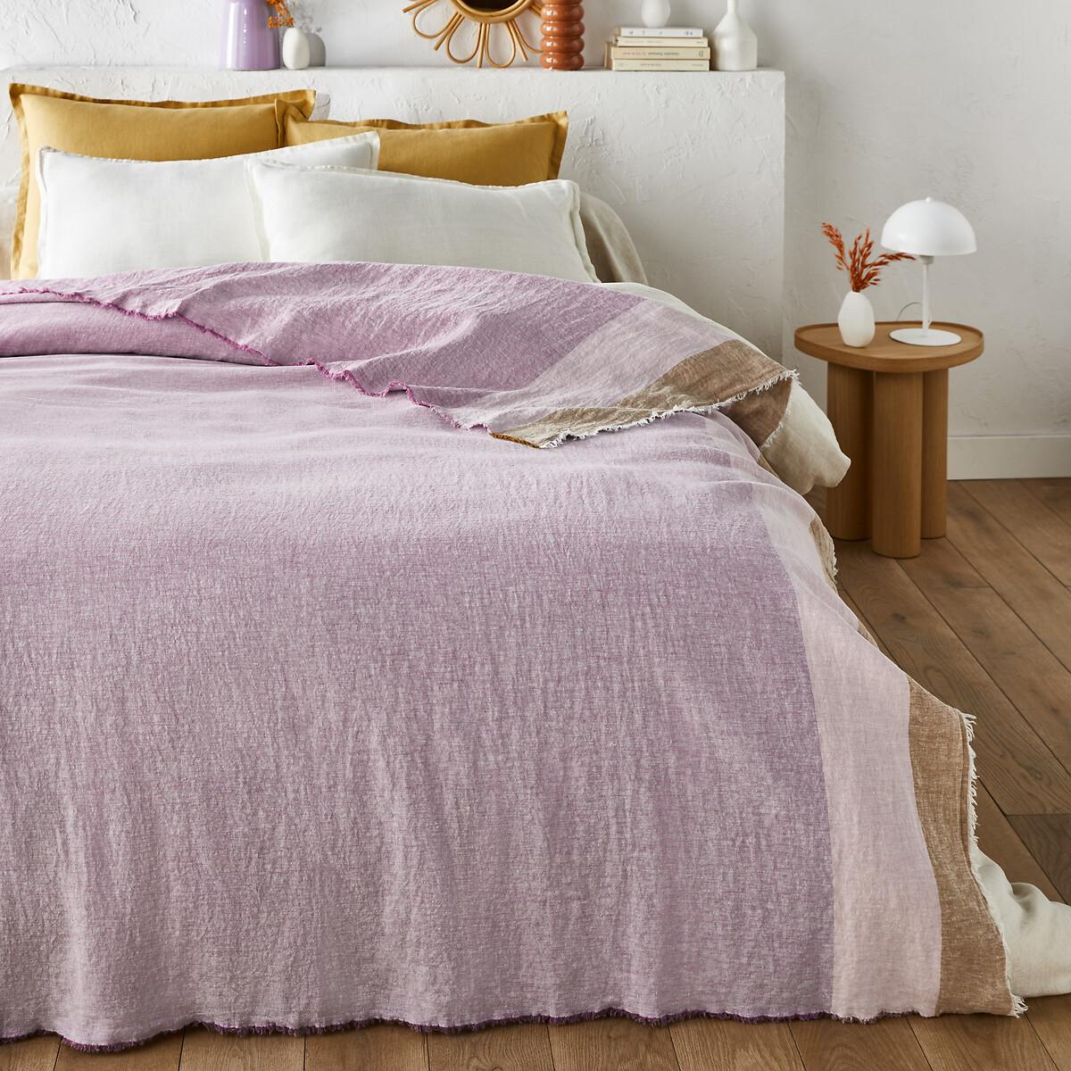 Latin-American inspired tones, woven-dyed stripes, raw fringe finish. Made from washed linen, Valparaiso has a naturally crinkled appearance and a supple feel.. Its white thread weft softens its colours. It creates a warm atmosphere in an interior, deployed on the bed in the bedroom, or draped over the sofa in the living room. Made in Portugal. Appreciated for its suppleness, washed linen becomes more beautiful and softer with every wash.. Slightly wrinkled, it does not require ironing. Product Details • 100% linen • Washed linen • Yarn-dyed stripes • Raw fringe finish. Care Advice • Machine washable at 40°C • By washing your laundry at 30°C instead of 40°C, you limit energy consumption. Dimensions • 180 x 250cm • 230 x 250cm • Made in Europe. • OEKO-TEX® Standard 100. Standard 100 certification by OEKO-TEX® tests textile products for harmful substances via an independent, international label.