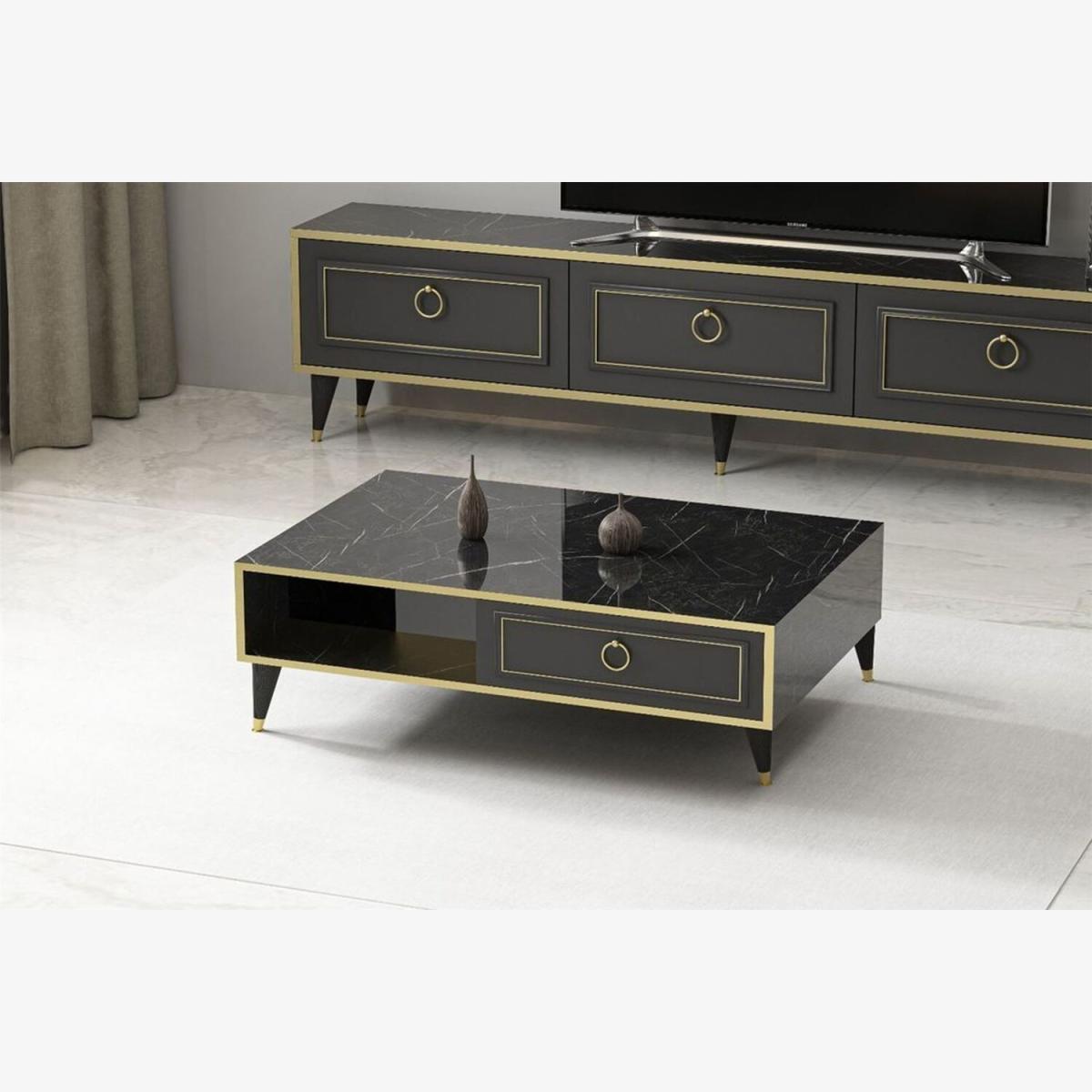 This unique modern-style coffee table with abundant storage options will give your living or office space that extra presence. The spacious open shelf can be used for creative display or to store books and magazines within easy reach. The spacious and smooth table-top has ample place to set down food and drinks whether working or entertaining. Large smooth surface to place books, magazines, or a tray of drinks and appetizers when entertaining.