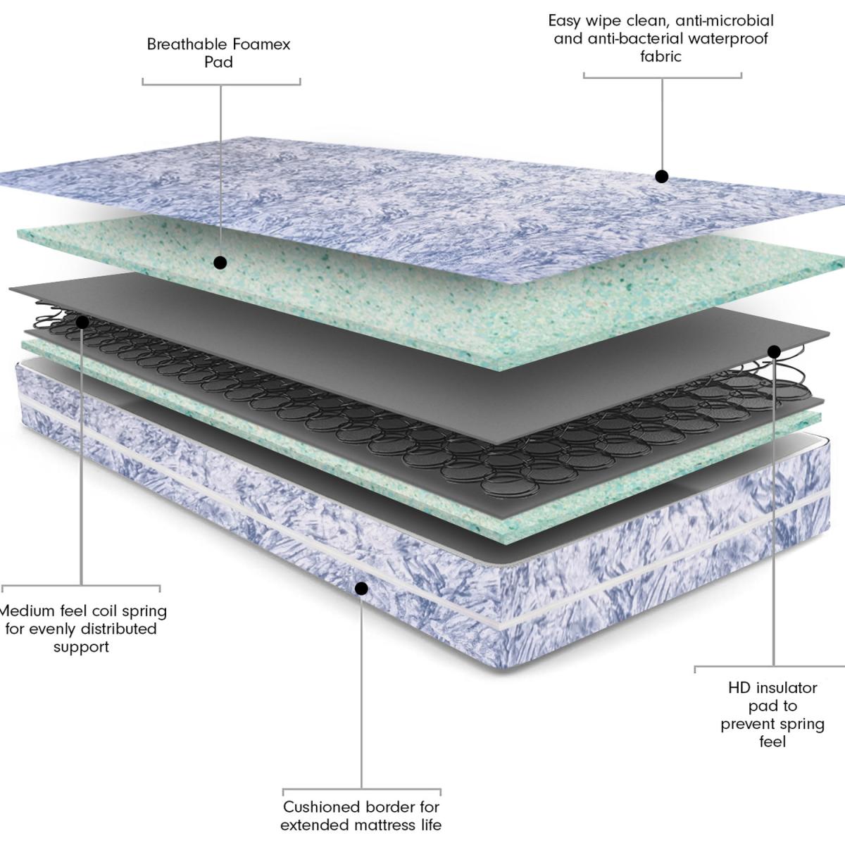 The Value Waterproof mattress constructed from a waterproof cover which offers anti-bacterial and anti-fungal protection, it can be wiped clean quickly and easily with minimum fuss. A layer of high density foam is used to act as the support mechanism in this mattress. The coil spring foundation allows for extra bounce which materials such as recon foam cannot do alone. As with all our mattresses, this product has been designed and manufactured in the United Kingdom to provide high quality and also to ensure that it conforms to all British fire regulations. Please allow 72 hours, once opened for mattress to fully expand and reform to its original shape.
