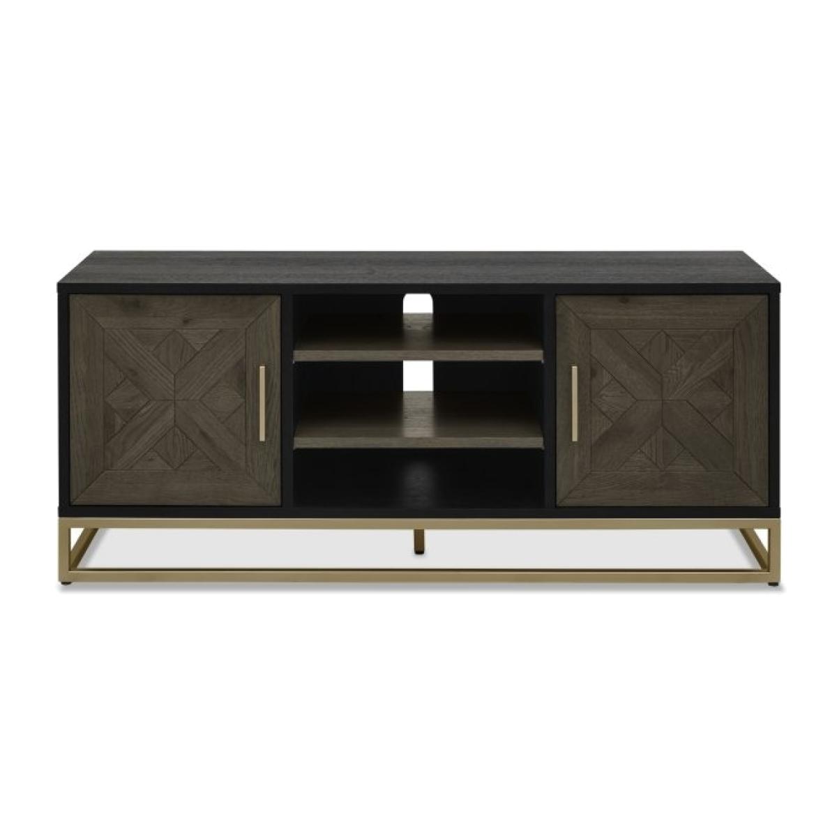 Enhance your living space with the Vancouver Fumed Oak Entertainment Unit with Door. This unit combines style, functionality, and quality for a sophisticated addition to your home. Features: A combination of fumed oak and peppercorn tones, complemented by elegant satin brass accents, adds a touch of luxury to your living room. Includes four shelves, offering generous space to organize media equipment and accessories. Designed for easy assembly by one person, taking approximately 20 minutes. Backed by a 2-year manufacturer’s guarantee for reliable quality and long-lasting use. Dimensions: Width: 133 cm Depth: 38 cm Height: 55 cm Transform your entertainment area with the Vancouver Fumed Oak Entertainment Unit with Door - a perfect balance of functionality and elegance. Please Note: All screens vary in colour reproduction and whilst every effort has been made to display the colour as accurately as possible it is for guidance only.