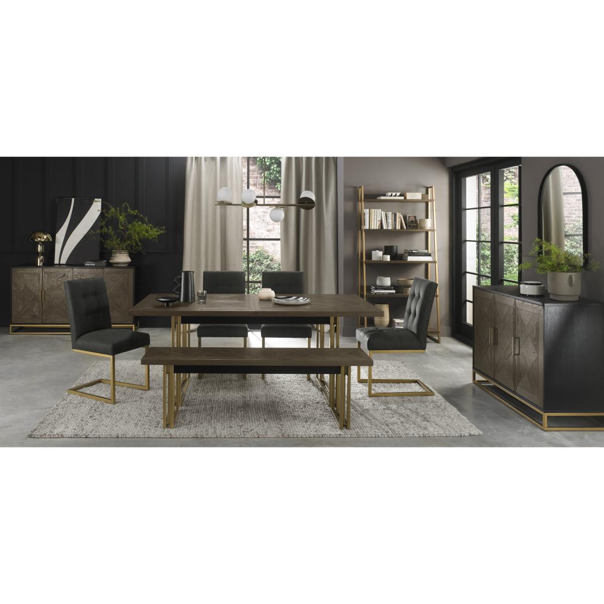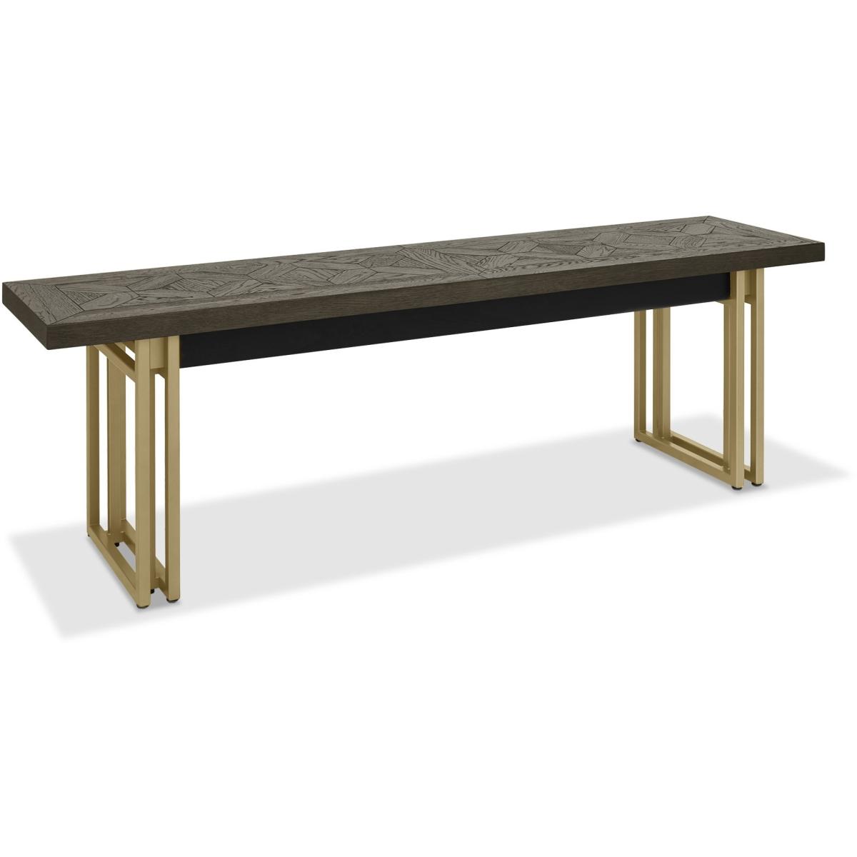 I’m a fan of this fumed oak bench for its clean lines and the contrast between the rich, dark timber top and the geometric brass-tone legs. It sits neatly under a dining table or console, making it a versatile seating option in a contemporary or industrial-leaning scheme. Styling tip: layer a slim, neutral cushion or sheepskin throw to soften the look, then tie in other metallic accents - think picture frames or lighting - with similar warm brass tones. In an entryway it doubles as a drop-zone for bags, and in an open-plan dining space it keeps the floor clear when guests aren’t seated.