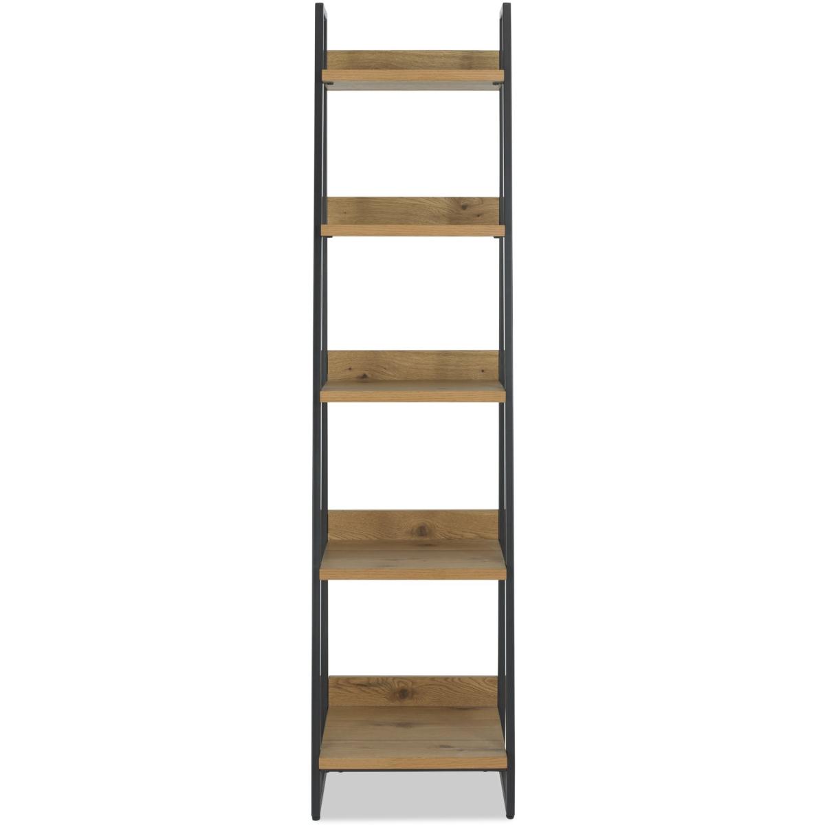 This Vancouver Rustic Oak Narrow Open Display Unit, crafted in Vietnam, features a rustic oak veneer finish and a sturdy gun metal frame with a powder-coated metal base. It includes five shelves, providing ample space for display. Assembly required - assembly requires two people and takes approximately 30 minutes. The cabinet measures 47cm in width, 43cm in depth, and stands 190cm tall. The product comes with a 2-year manufacturer's guarantee, ensuring its quality and durability. Features: Rustic Oak Tops & Black Gun Metal Frames Matching Furniture Available 2 Year Manufactuer's Guarantee  Dimensions: Width: 47cm Depth: 43cm Height: 190cm All screens vary in colour reproduction and whilst every effort has been made to display the colour as accurately as possible it is for guidance only.
