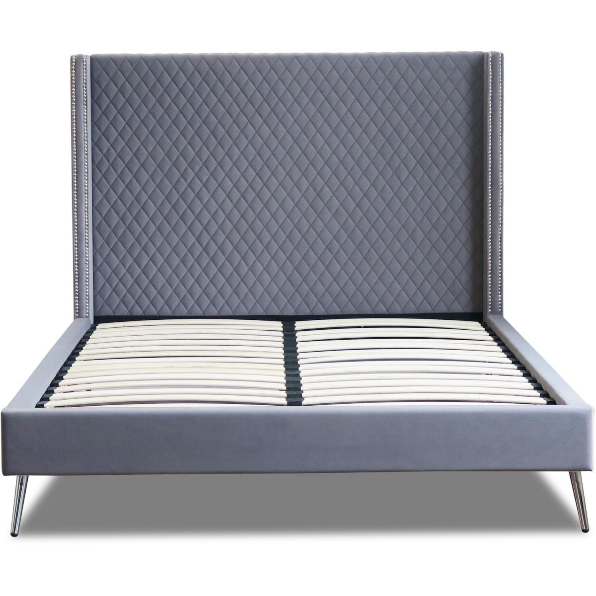 The Vanessa Bed is a sophisticated and luxurious piece of furniture for any bedroom, helping you to sleep in elegant style. This bed has a beautifully modern high headboard with wings accented with metal beads and stitched with a quilted effect to give you a rich, sumptuous feel. The bed has a textured grey fabric to make it feel comfortable and opulent. It features sprung wood slats for ultimate comfort. The bed is finished with coordinating metal legs, meaning this bed will make your bedroom look opulent. With this in your room, you'll be excited to head to bed every evening.
