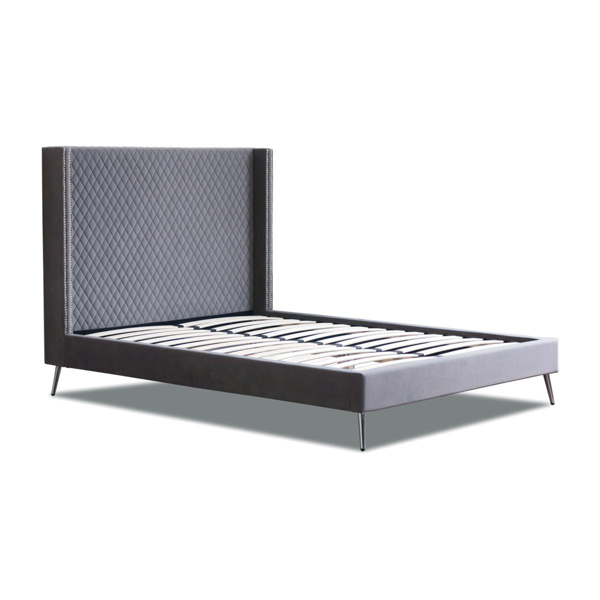 The Vanessa Bed is a sophisticated and luxurious piece of furniture for any bedroom, helping you to sleep in elegant style. This bed has a beautifully modern high headboard with wings accented with metal beads and stitched with a quilted effect to give you a rich, sumptuous feel. The bed has a textured grey fabric to make it feel comfortable and opulent. It features sprung wood slats for ultimate comfort. The bed is finished with coordinating metal legs, meaning this bed will make your bedroom look opulent. With this in your room, you'll be excited to head to bed every evening.