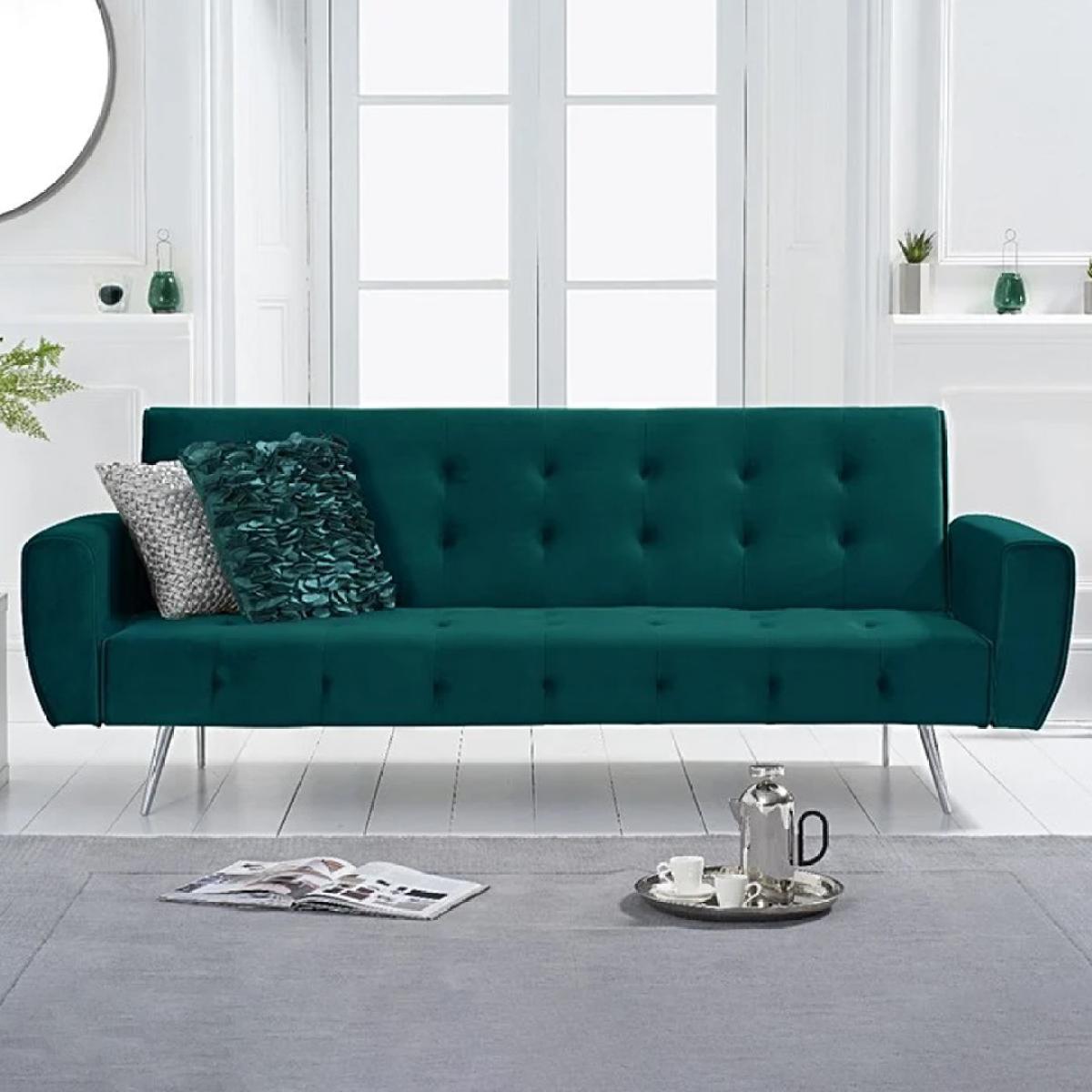 The Vanessa sofa bed in green velvet is a stylish choice for adding colour and texture to both modern and eclectic interiors. I love how its lush velvet finish enhances a sophisticated yet inviting look, making it perfect for living rooms that double up as guest spaces. It works well with neutral tones like soft greys, creams, or even contrasting deep hues for a more vibrant feel. Practical styling tips include pairing it with minimalist metallic accents or patterned cushions to highlight the velvet's rich texture. Its clean lines and slim legs also make it versatile for smaller spaces, while the ability to easily convert into a bed offers functional comfort without compromising on style.