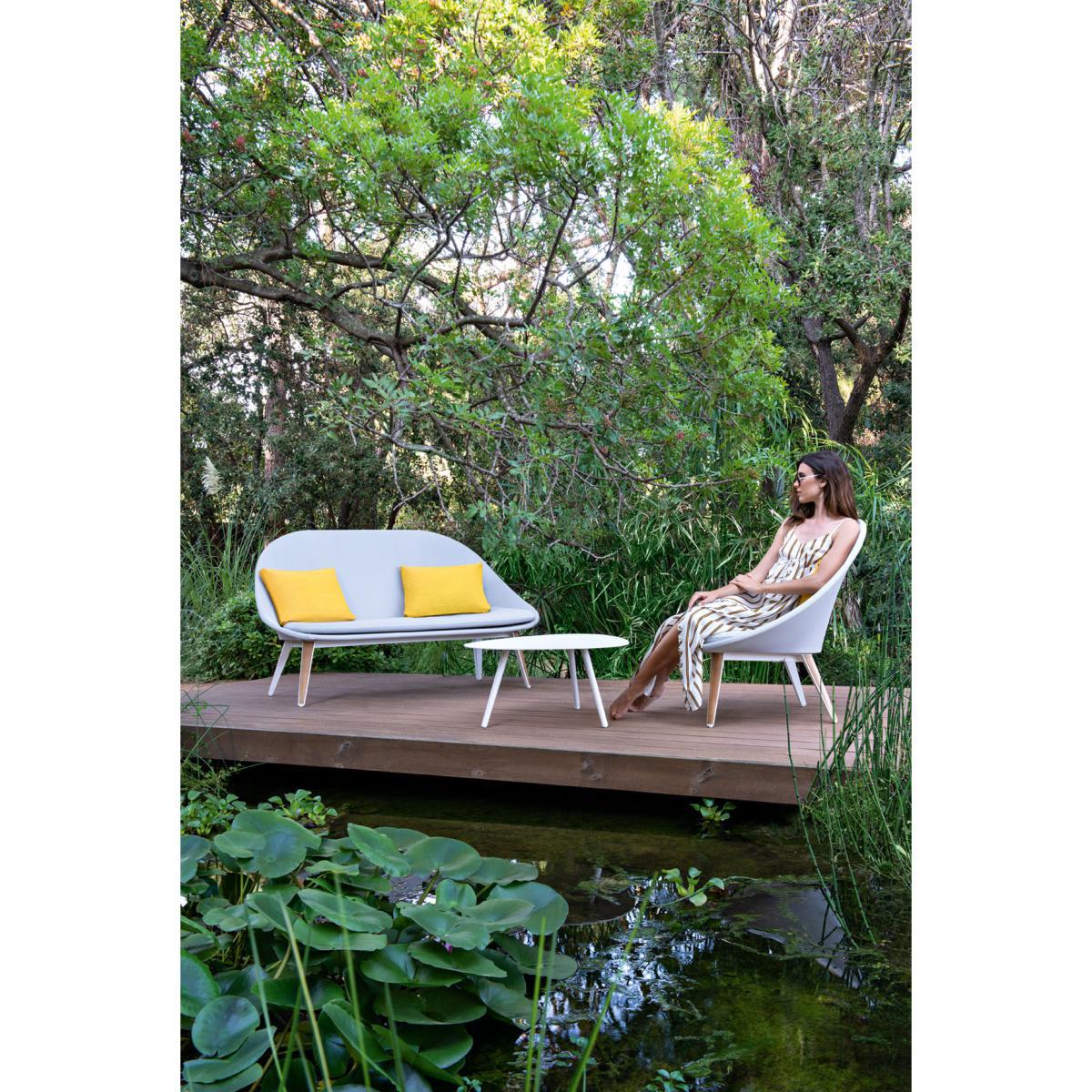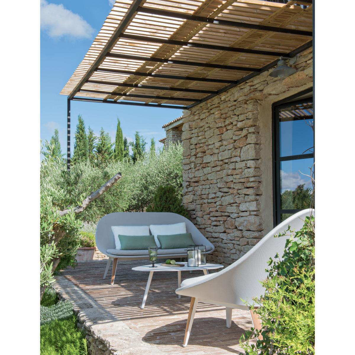 Vintage is in the air in our outdoor spaces! With its slender legs and curves, the Vanity coffee table is inspired by fifties elegance. Sleek and refined, this aluminium table stands out for the beautiful organic lines of its ovoid top. Lightweight and easy to live with, this luxurious piece of furniture with its perfect finish is ultra-resistant to weather and UV. Its chic and timeless style fits in with a range of environments. For over 50 years, the French manufacturer, Vlaemynck, has been fitting out the exteriors of the most luxurious establishments: the Carlton and the Martinez in Cannes, the terrace of the Park Hyatt Paris-Vendôme Palace, etc. Made in France (Burgundy), this high-end outdoor furniture offers exceptional quality and robustness.