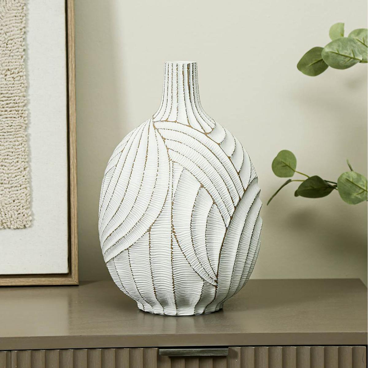 The Vanity Living White with Brown Lining Polyresin Vase is a stylish and modern addition to any home. With its elegant white finish accented by a subtle brown lining, this vase effortlessly combines contemporary design with a touch of rustic charm. Made from durable polyresin, its perfect for holding artificial or dried flowers or as a decorative piece in its own right. This versatile vase suits various home decor styles, including minimalist, modern, or rustic interiors. The Vanity Living 30cm White with Brown Lining Polyresin Vase offers a perfect balance of elegance and simplicity. With its clean white finish and delicate brown lining, this vase is a sophisticated addition to any home. Crafted from durable polyresin, it is ideal for holding artificial or dried flowers, or simply as a standalone decorative piece. Its versatile design makes it suitable for modern, rustic, or minimalist decor, bringing style and charm to your living room, bedroom, or hallway.