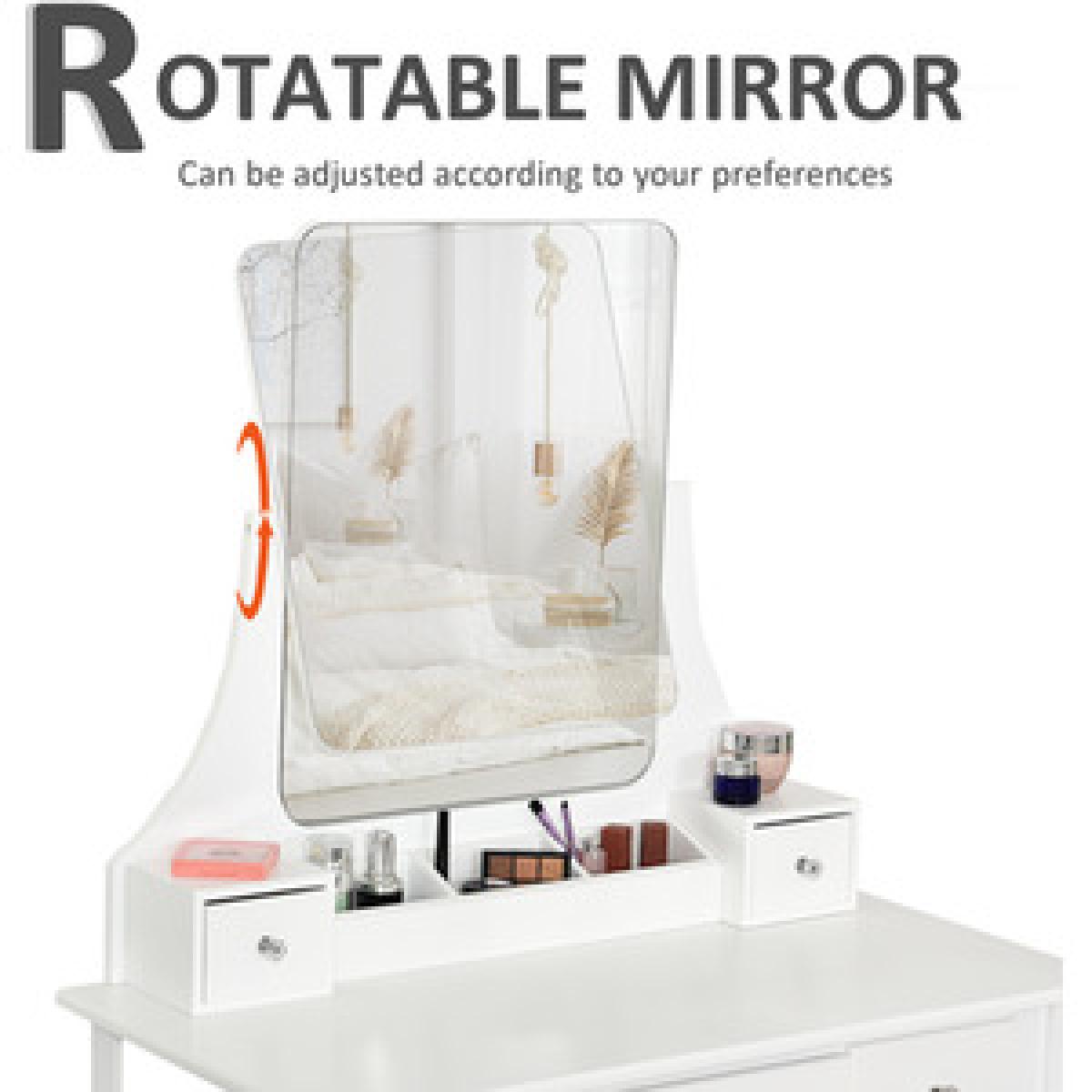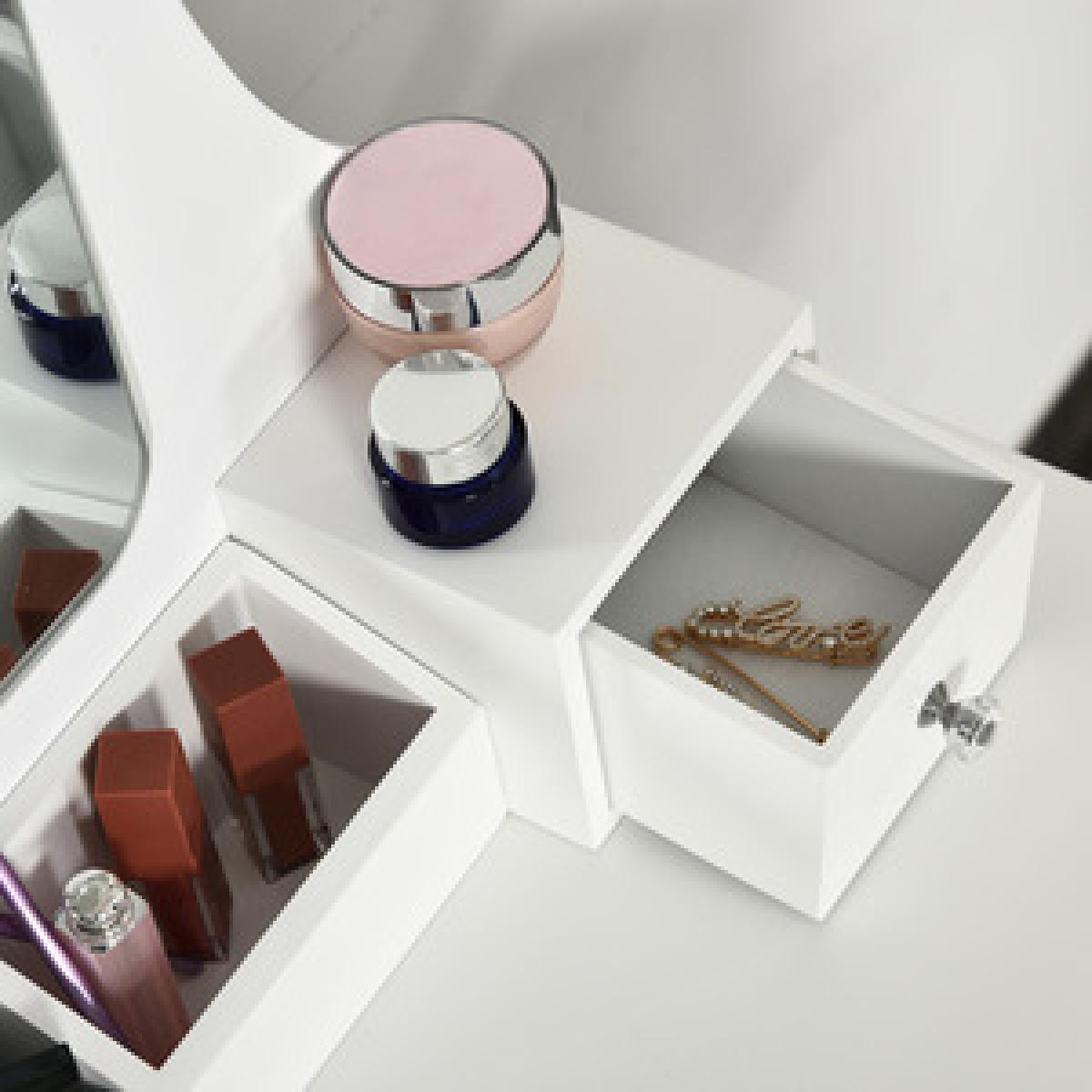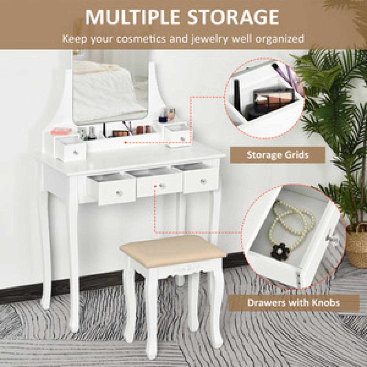 Vanity Table Set Dressing Table with 5 Drawers Cushioned Stool - White