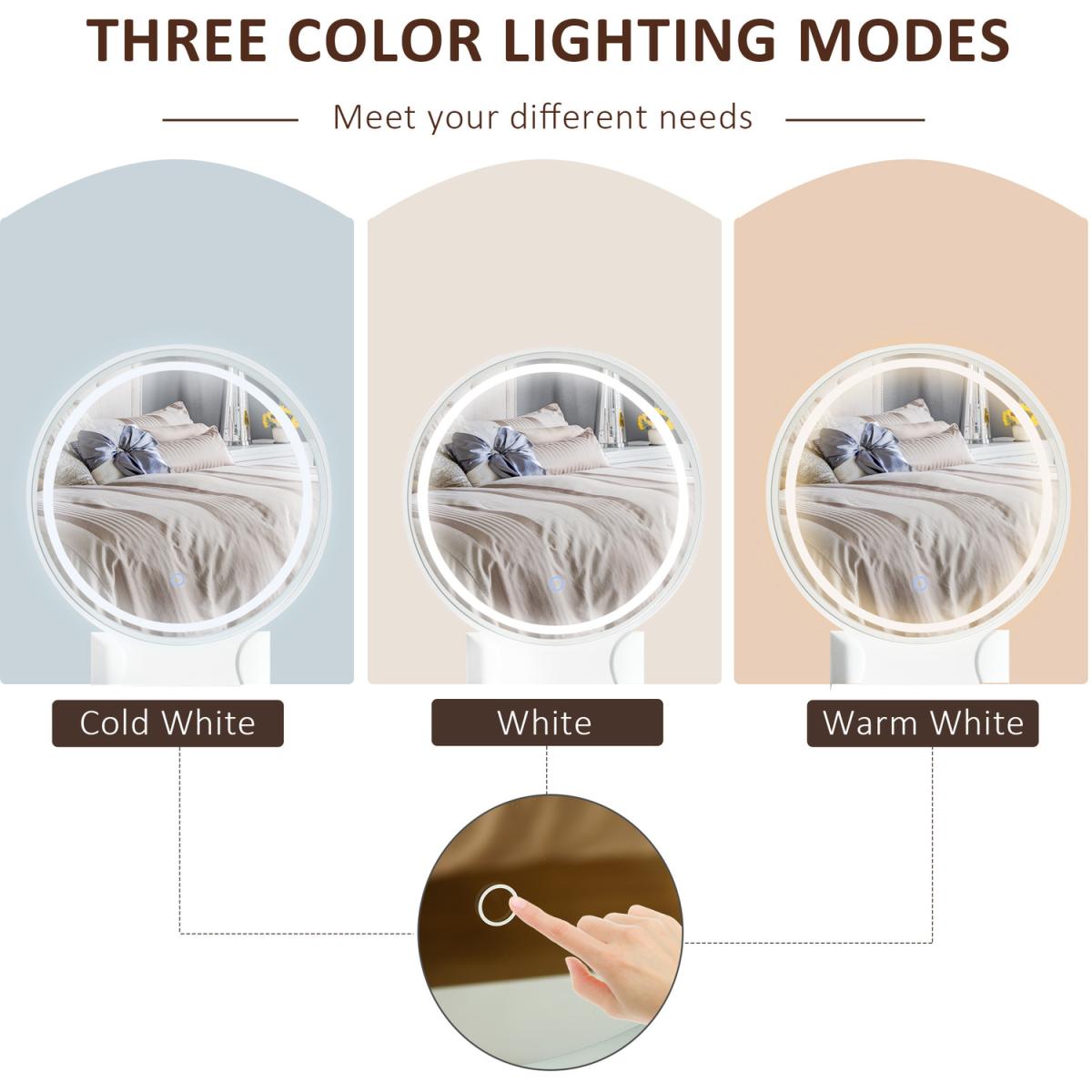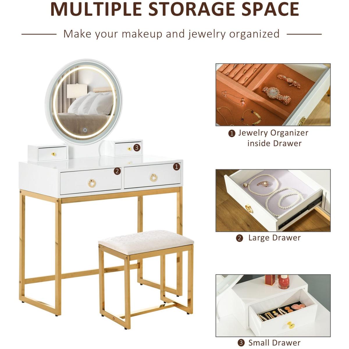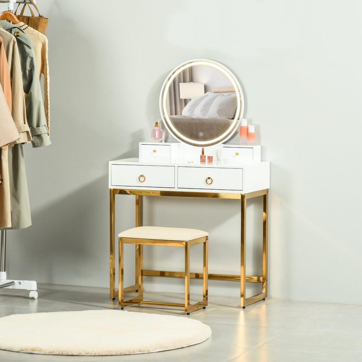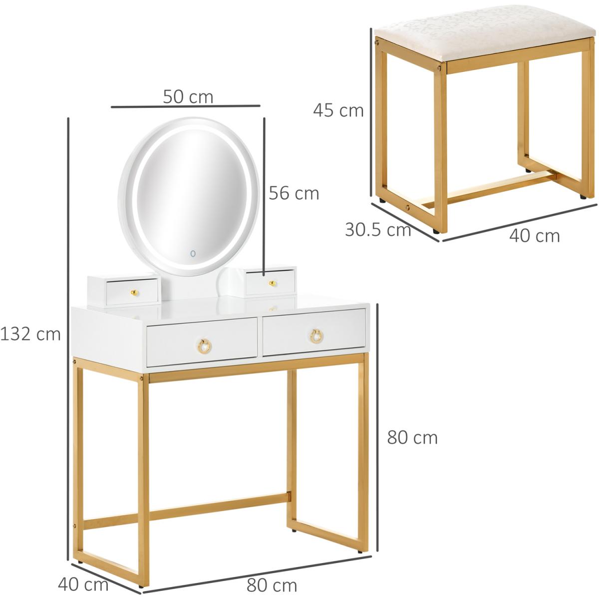 Vanity Table Set Dressing Table with LED Light, 4 Drawers Cushioned Stool - White and Gold