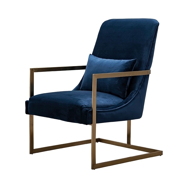 Vantagio Lounge Chair - Navy Blue - Brushed Gold base