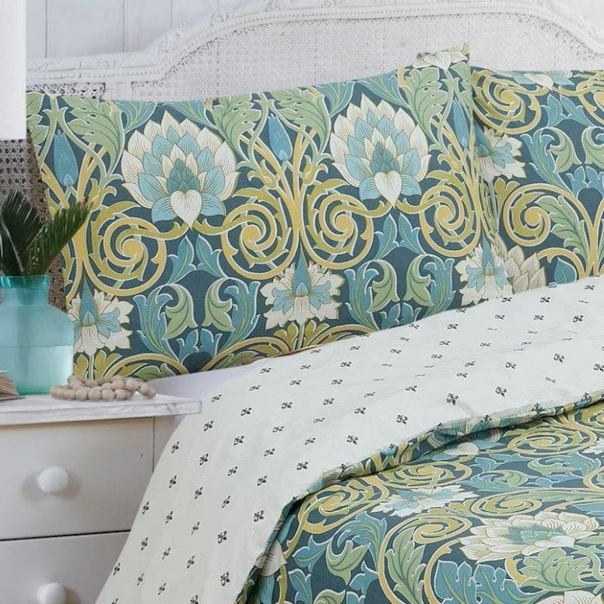 Create a luxurious and sensuous atmosphere in your bedroom with the Vantona Chester Damask Duvet Cover Set in Green. Carefully curated by Vantona's designers, this boutique-style bedding collection exudes elegance and tranquility, transforming your bedroom into a haven of peace. The exquisite damask pattern, adorned with floral motifs, adds a touch of sophistication to your space. Crafted from a blend of 50% cotton and 50% polyester with a 180 thread count, this duvet cover set offers a combination of softness and durability for a comfortable night's sleep. 50% cotton / 50% polyester 180 thread count Machine washable Iron on low Tumble dry low Single sets 1 pillowcase and double, king, and super king sets 2 pillowcases. All screens vary in colour reproduction and whilst every effort has been made to display the colour as accurately as possible it is for guidance only.