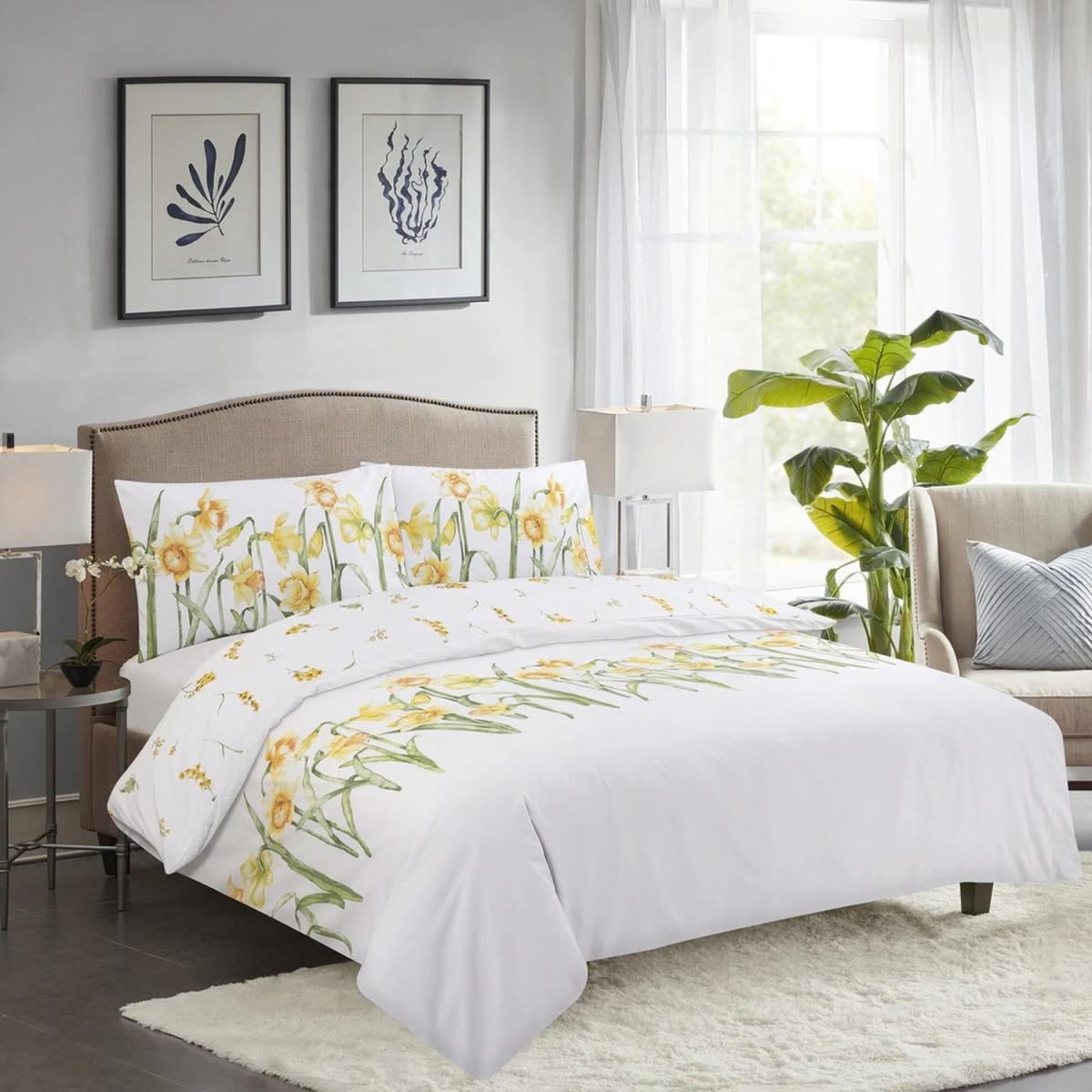 Vantona Classic Daffodils Duvet Cover Set - White/Multi / Single