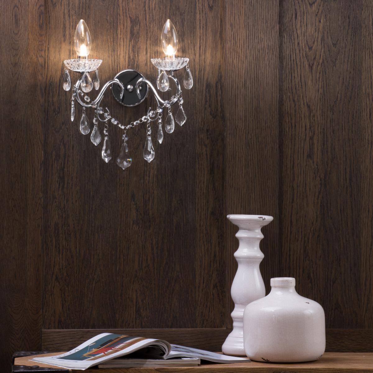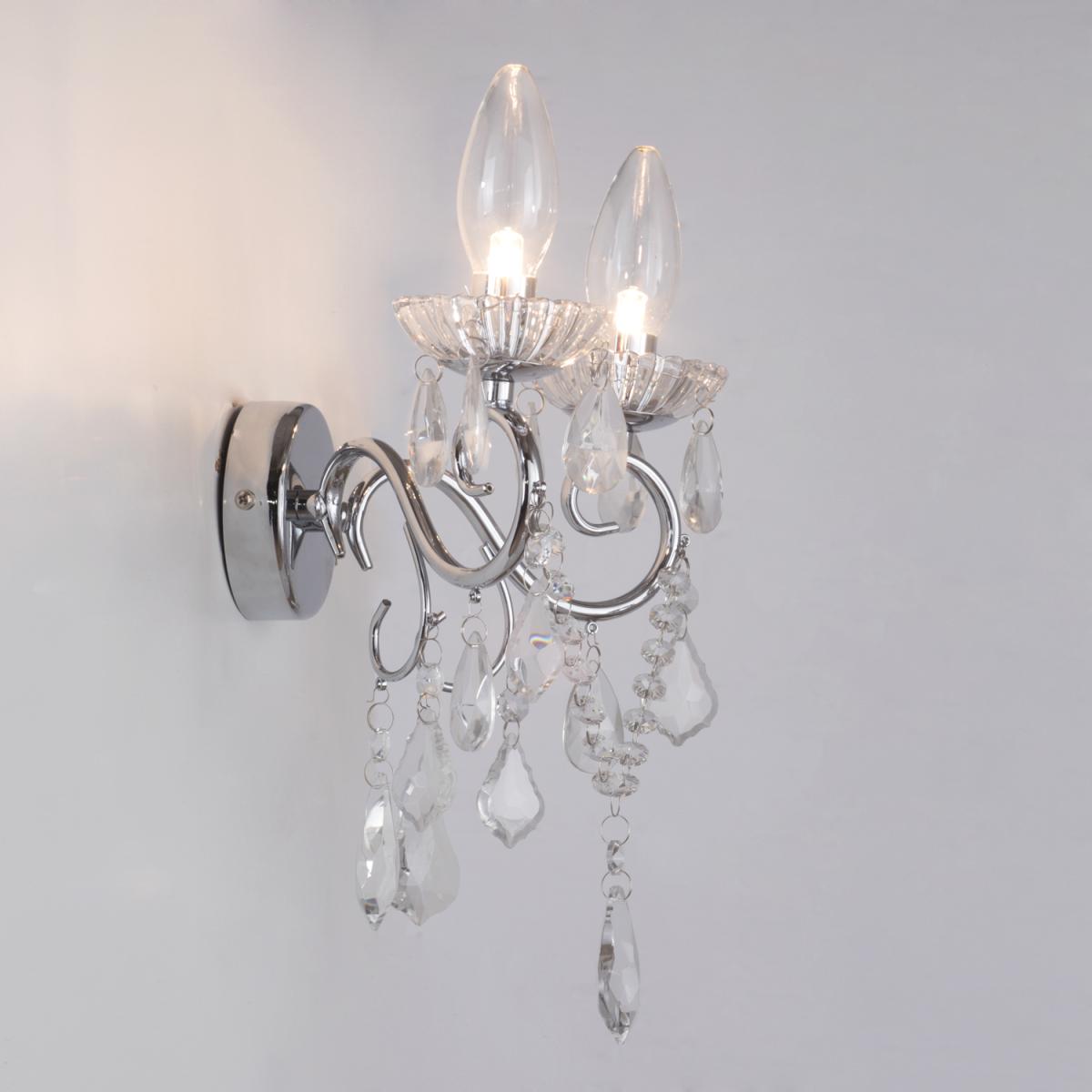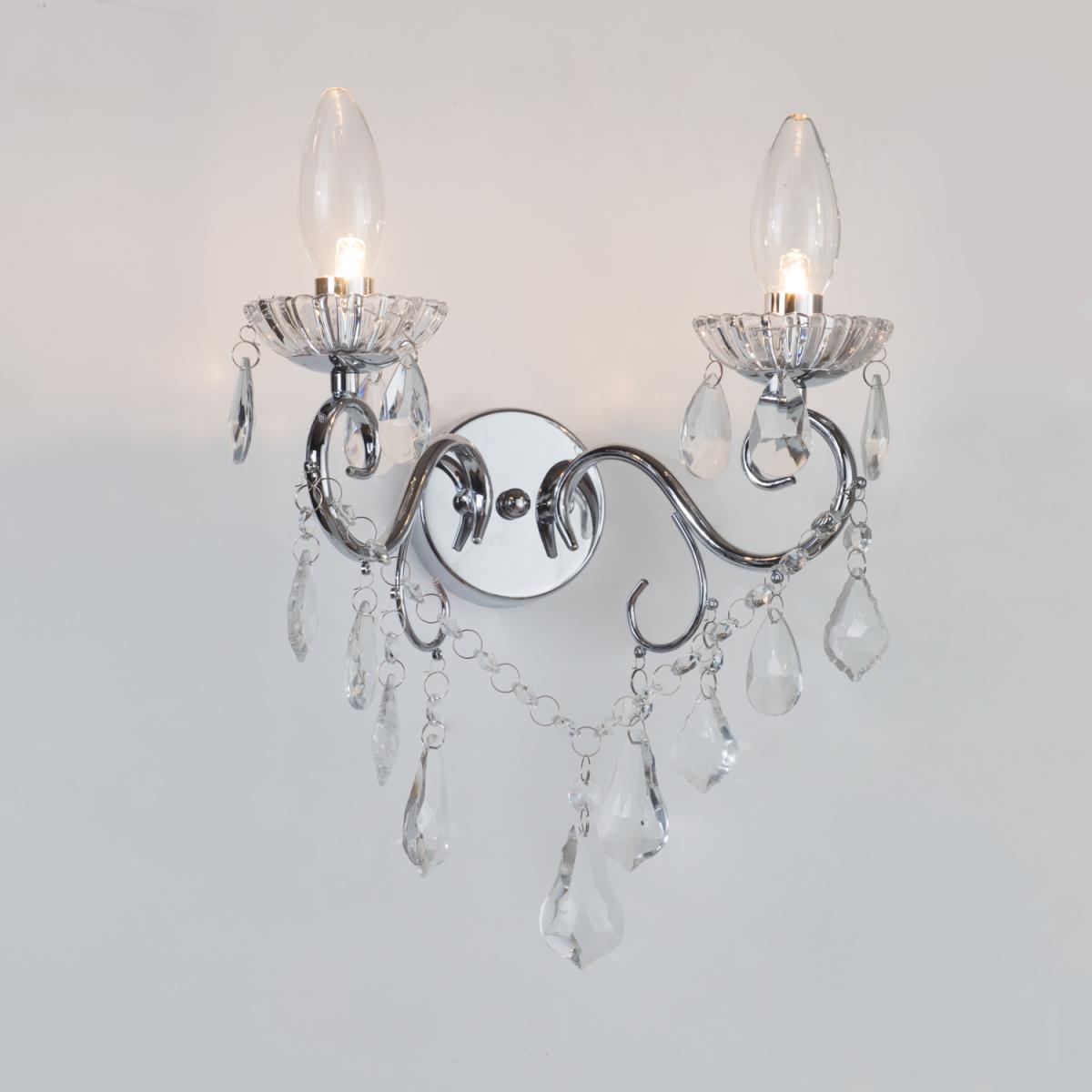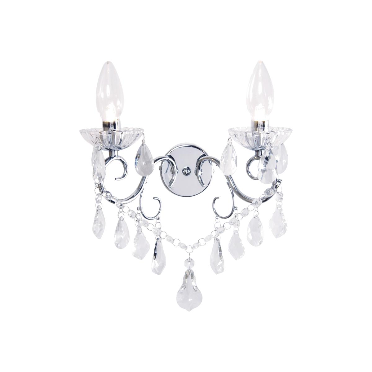 Add timeless accent to your bathroom with the Vara 2 Light Wall Light. The crystal effect droplets of this 2 light wall fixture add elegance to your bathroom theme. The chic 2 armed design and IP44 rating for water resistance of this bathroom wall light wonderfully pair to create a stunning yet robust mirror accent.