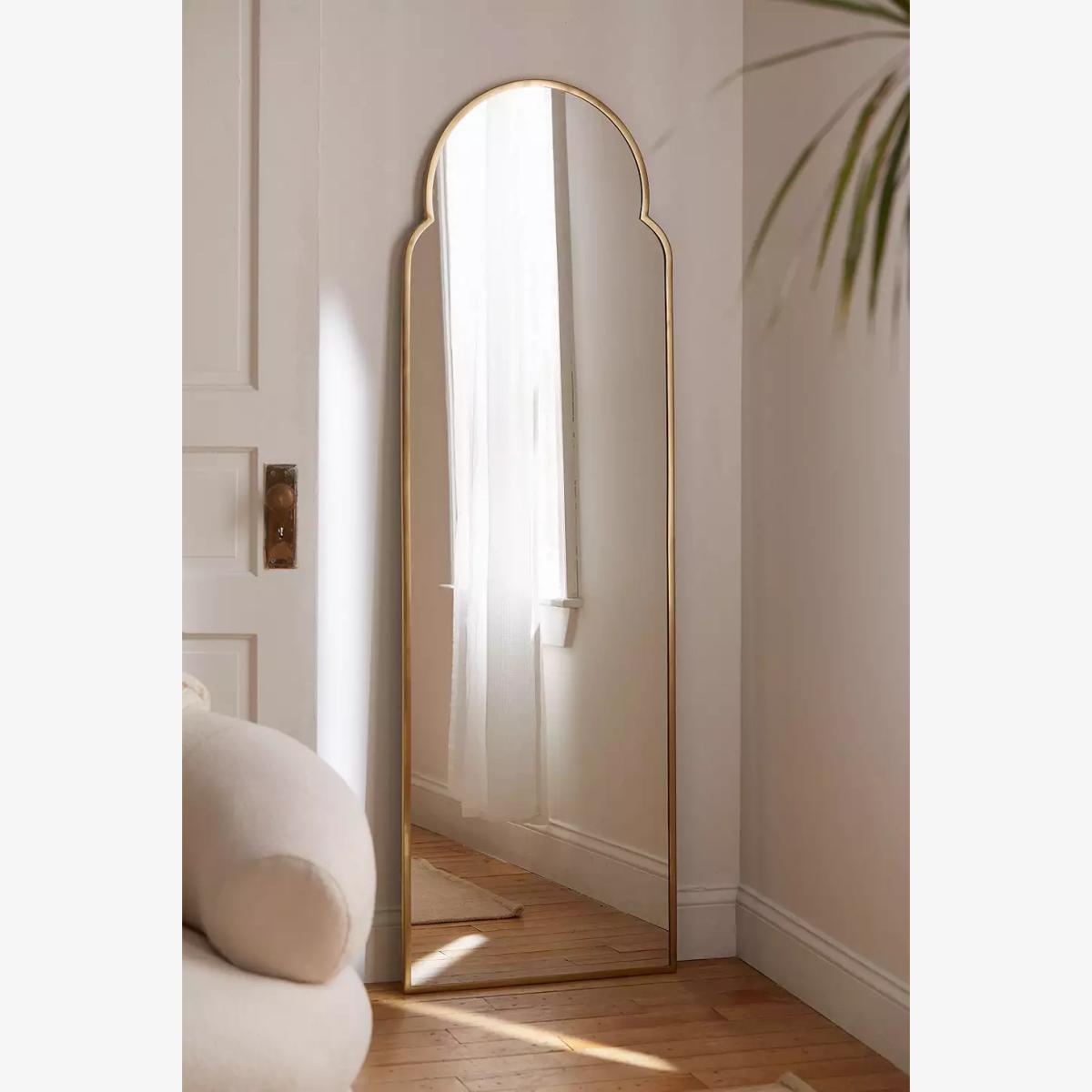Add a chic, artistic mirror to your minimal space with the Verena floor mirror. The curved-edge mirror feature art deco styling with a metallic finish border. Complete with an engineered backboard for easy application to your wall space. *Online return only. This item cannot be returned instore. Please note furniture items currently cannot be shipped to Northern Ireland or The Republic of Ireland. Delivery of large furniture items may take 1-2 weeks and are therefore not eligible for Next Day Delivery.* **Content + Care** \- Iron, MDF \- Wipe clean **Size** \- L: 52cm x W: 1.3cm x H: 162.5cm \- Weight: 27.3lbs