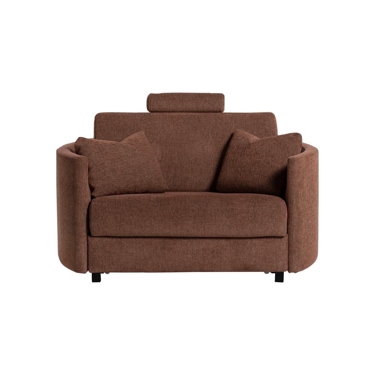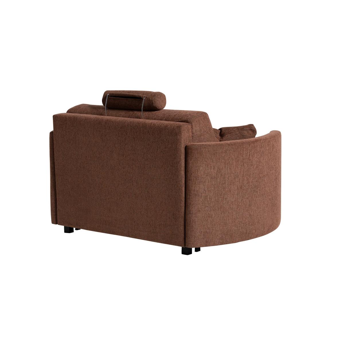 The Varo Armchair Sofa Bed blends stylish design with practical function. Its inviting silhouette features softly rounded arms and supportive fibre silk-filled cushions for relaxed seating. Effortlessly transform it into a bed with the integrated metal mechanism concealing a single mattress within, perfect for overnight guests. Upholstered in a warm, textured fabric and supported by a solid wood frame with discreet wooden legs, this pull out chair bed offers lasting comfort and versatile elegance in compact, contemporary living spaces.