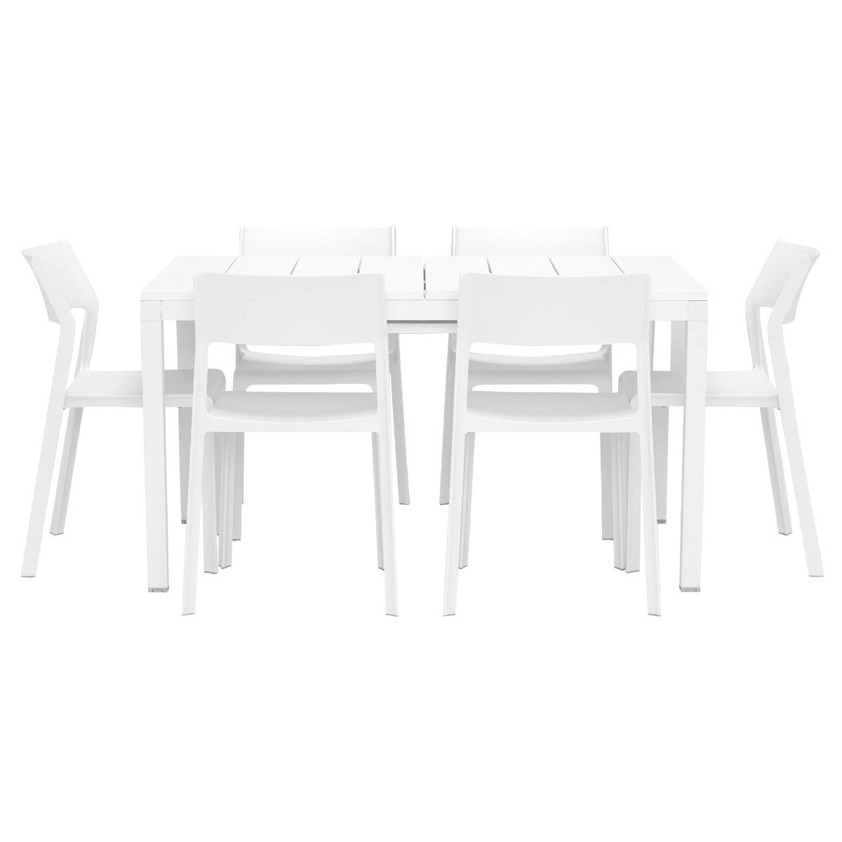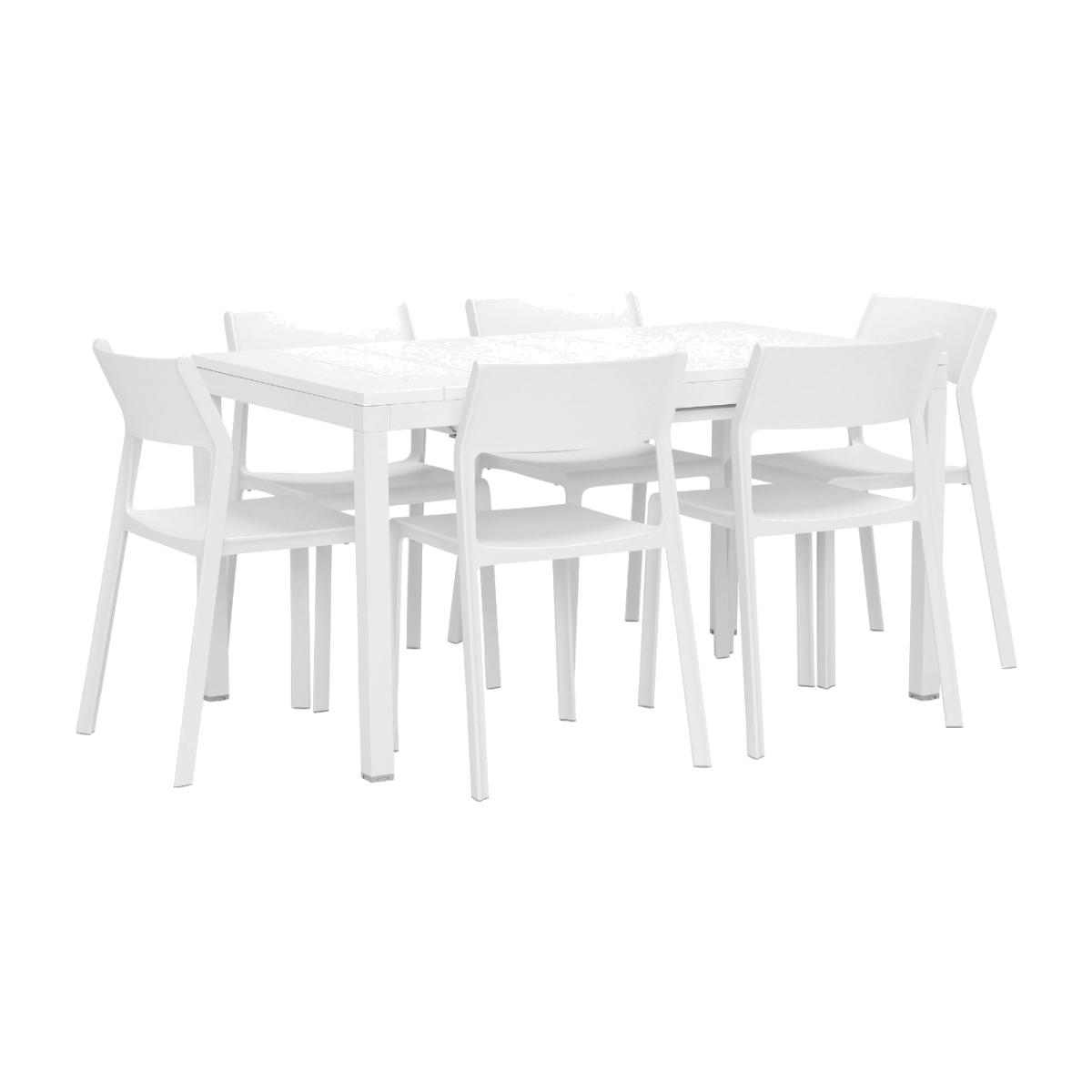Design. Garden furniture should be stylish, timeless, and easy to manage. The Varuna Dining Table with 6 Calisto Dining Chairs is the perfect fit for all three! This set is finished in a stunning Bianco Matt for contemporary versatility, whilst is easily wipeable to ensure longevity. The Varuna Table features an extending feature, allowing more space for guests at dinner! Each chair is also designed with sleek angled legs for a modern touch, ensuring this set to stay on trend.