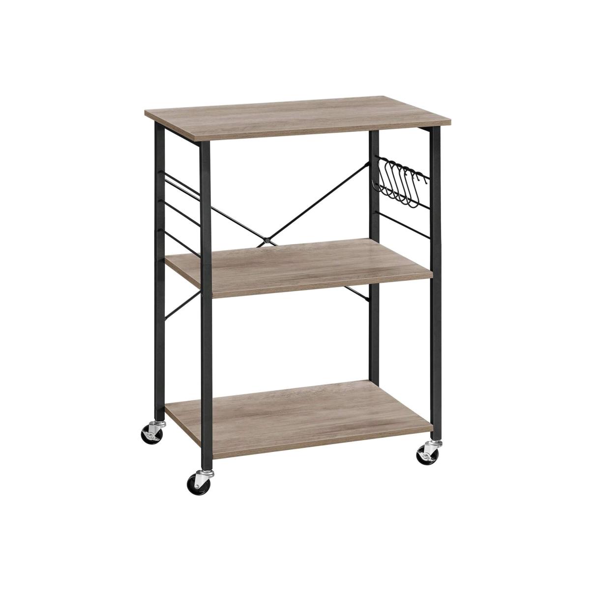 This 3-tier kitchen shelf on wheels is the perfect storage solution for any kitchen with limited space. Measuring 40 x 60 x 89 cm, it features shelves spaced 38 cm apart, providing ample storage for your essentials. The compact design allows for easy movement, thanks to 4 castors, 2 of which have brakes, making it simple to transition from kitchen to dining room or living room. Crafted from high-quality particleboard and a robust steel frame, it ensures exceptional durability, reinforced by X-shaped bars for reliable support. Additionally, it includes 6 removable S-shaped hooks for hanging utensils, and assembly is a breeze with clear instructions and labelled parts.