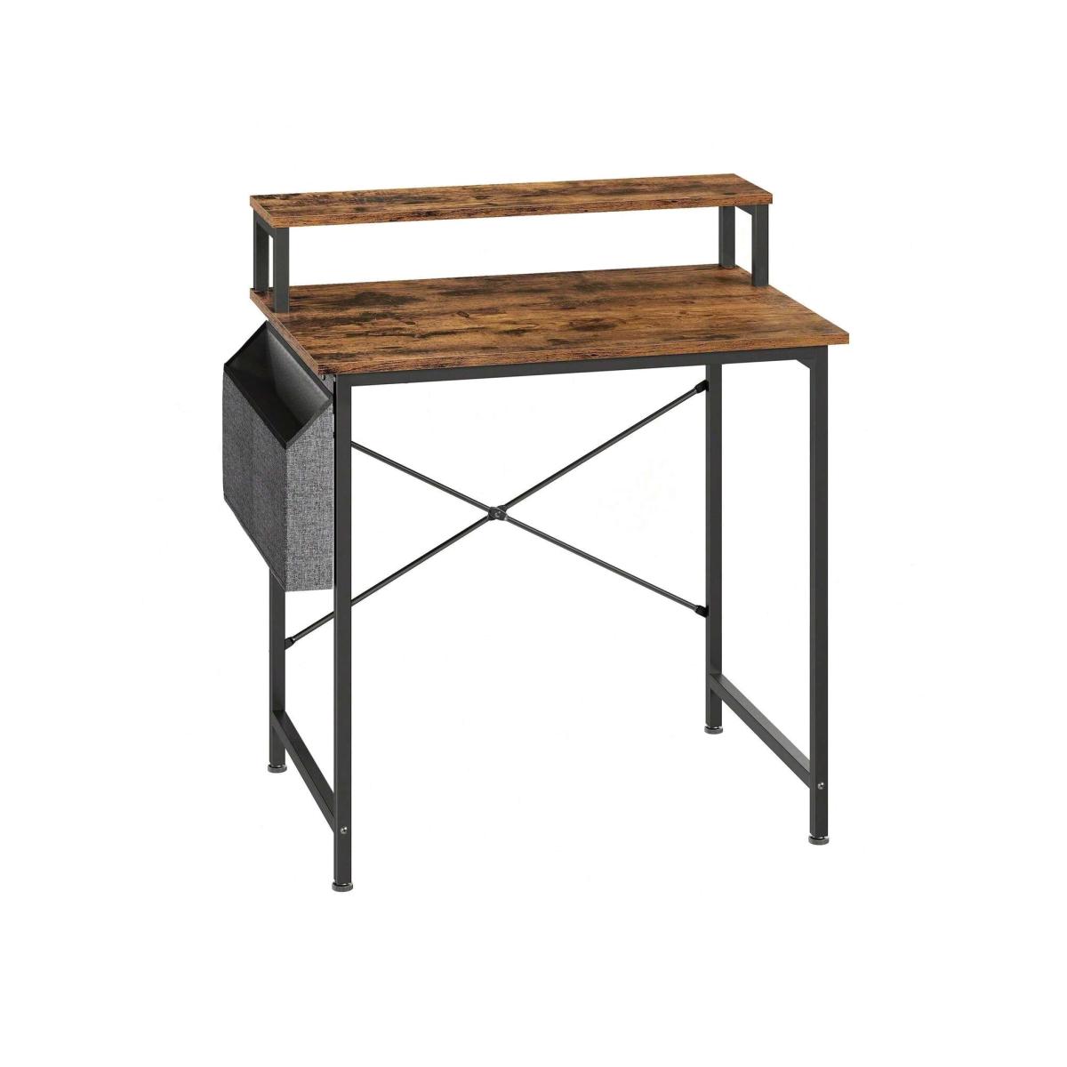 This computer desk features a creative mix of rustic brown panels and industrial black steel, perfect for enhancing your workspace. The top monitor shelf raises your screen by 14.6 cm, promoting a healthy posture and reducing neck and back pain. You can customise the fabric pouch's placement on the left or right to keep your notepad, phone, sticky notes, and USB drive within easy reach. With a robust steel frame and X-bar reinforcement, stability is guaranteed, while adjustable feet ensure it remains steady on uneven floors. Assembly is straightforward with numbered parts and clear instructions, allowing you to get back to work quickly.