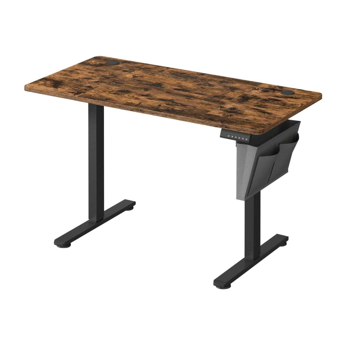 This height adjustable desk features a robust steel frame and particleboard panels, supporting up to 70 kg for a stable workspace. The premium motor ensures smooth height adjustments between 72-120 cm at a noise level below 50 d. B, creating a quiet environment. With the ability to save 4 preferred heights, it offers flexible and safe height adjustment, retracting slightly when encountering obstacles. The desk includes a durable Oxford fabric pocket for storing books and stationery, a hook for headphones or bags, and 2 cable holes for easy cable management, keeping your workspace neat. Assembly is straightforward with labelled parts and clear instructions.