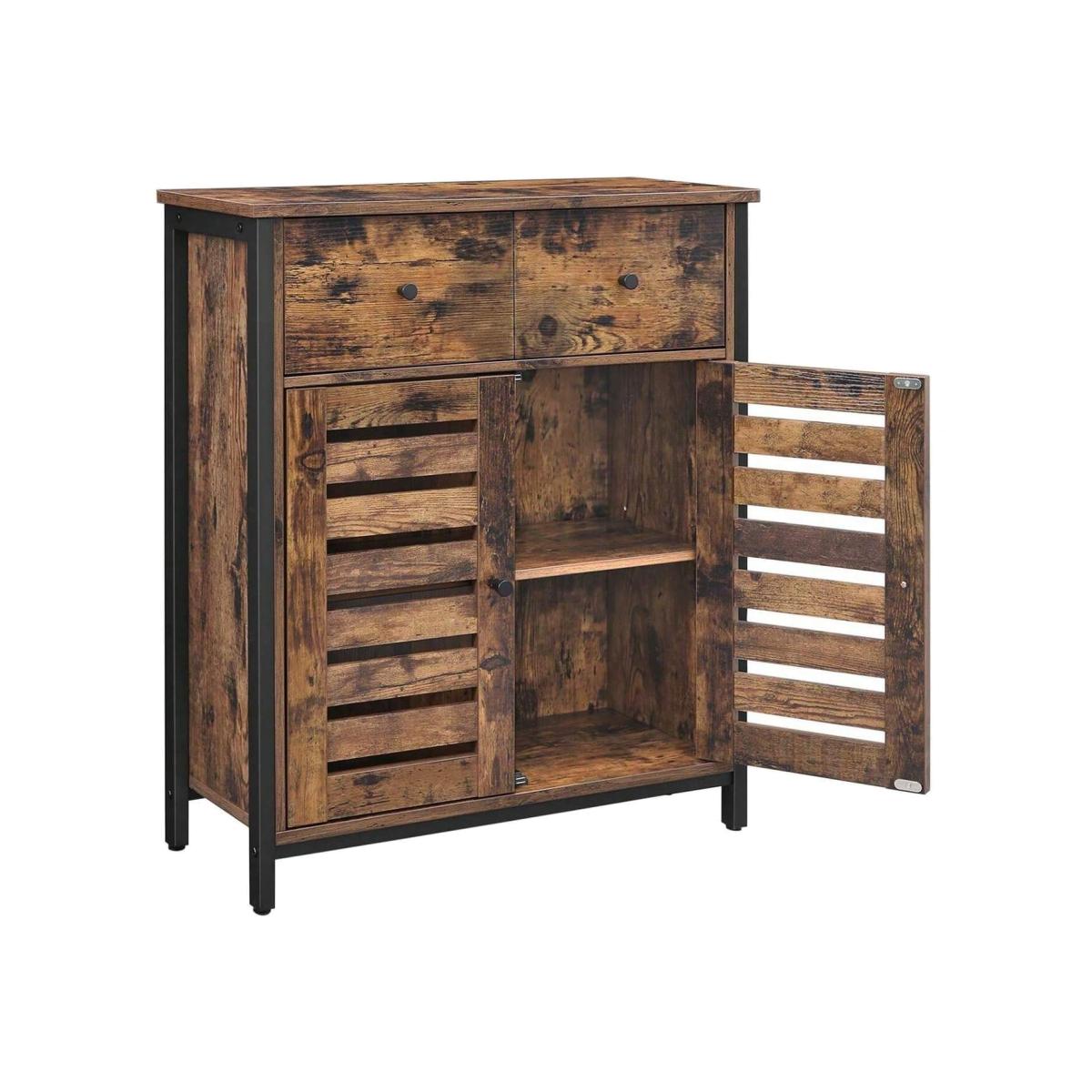 Looking to give your living room, bedroom, or hallway the stylish sidekick you and your room both deserve This freestanding storage cabinet is the ideal complement to your other furniture, offering ample storage space with a spacious tabletop, 1 large drawer, and 1 shelf hidden behind 2 classic louvered doors for movies, games, knick-knacks, and more. Assembly is simplified with easy-to-follow instructions, allowing you to have it ready before the pizza is out of the oven. Plus, each metal leg features an adjustable foot to ensure stability and eliminate wobbles. Enjoy a freestanding storage solution that combines functionality and rustic charm.