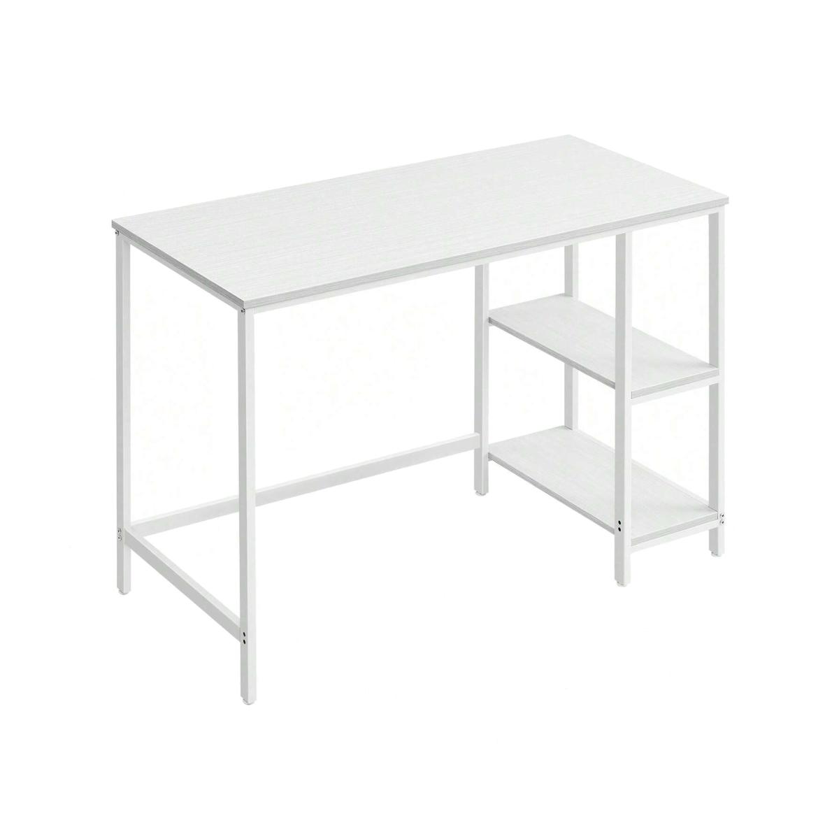 This modern office desk features a spacious desktop measuring 100 x 50 cm, providing ample space for 2 monitors, a keyboard, and other office supplies, ensuring everything you need for your daily work is within reach. With versatile usage, the 2 removable shelves can be installed on either the left or right side, and the middle shelf can be removed for additional storage space for larger items. Constructed from thick particleboard and a premium steel frame, it offers a sturdy and durable structure with a high load capacity of up to 50 kg. The adjustable feet ensure stability on uneven floors, while easy assembly with clear instructions makes setting up your workspace effortless.