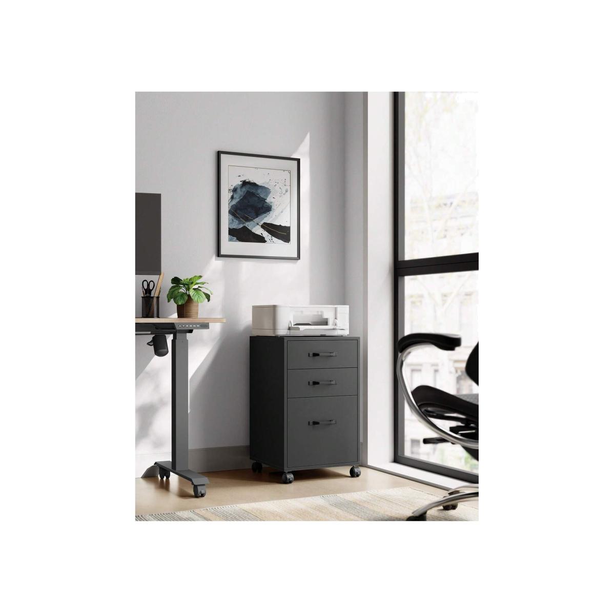 This under desk cabinet combines style and utility, helping you relieve your desk from piles of papers and messy stress. With a charming rustic appeal, it features a top drawer for sticky notes and small office supplies, and a large bottom drawer with hanging rails for A4 or letter-sized files. The mobile cabinet is equipped with 4 quality wheels, 2 of which have brakes for added convenience, allowing it to adapt to different situations. Assembly is a breeze with numbered parts and illustrated instructions, enabling you to set it up quickly and start tidying your workspace while enhancing the attractiveness of your home office.