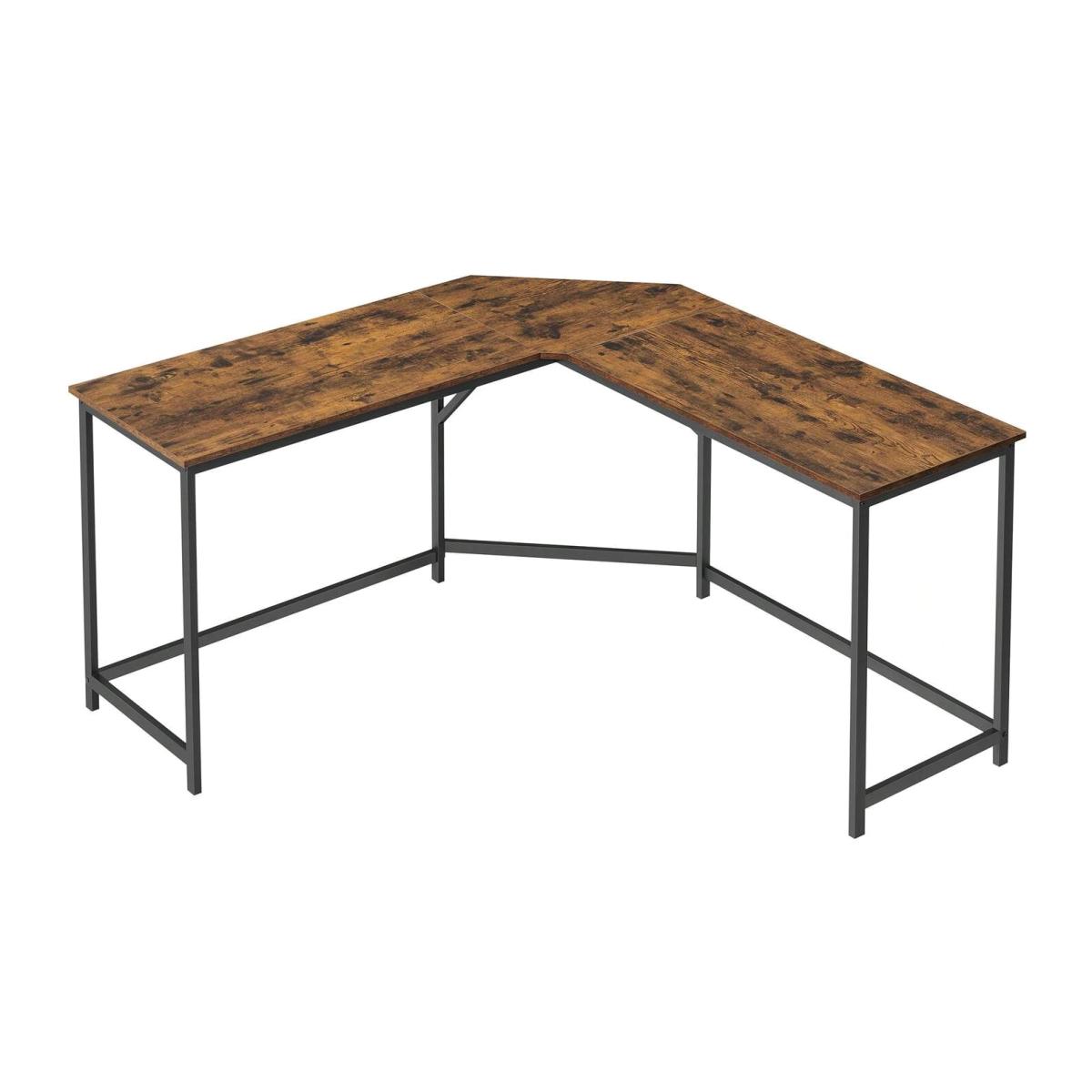 This L-shaped desk features a space-saving corner design with a spacious desktop measuring 149 x 149 cm, providing ample room for 3 to 4 computer monitors and other small items. Constructed with robust particleboard panels and a steel frame, it supports up to 50 kg and includes adjustable feet for added stability while protecting your floor from scratches. The chamfered rear corner allows for easy cable management, keeping your electronic cords organised and your desktop tidy. With clear instructions and labelled parts, assembly is quick and easy,. Its minimalist style, featuring a black steel frame and ebony black particleboard panels, seamlessly integrates into your home decor.