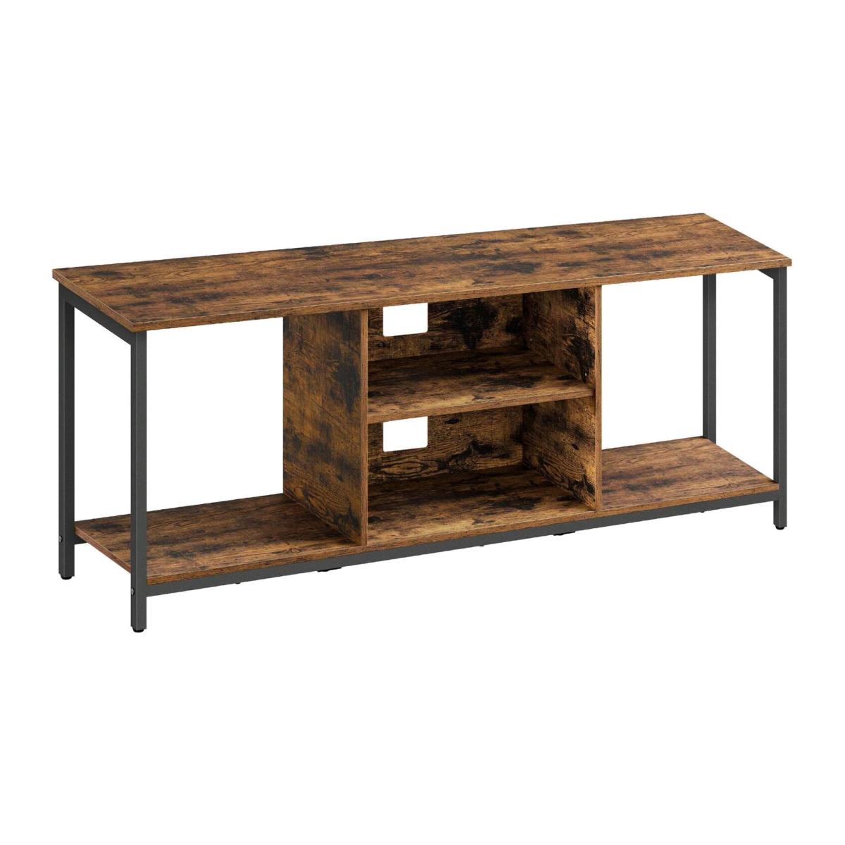 Transform your living space with our industrial-style TV stand, perfectly balancing style and functionality. Designed to support TVs up to 65 inches, this stand features a generous 147 x 40 cm top, along with two central open shelves and two side shelves, providing ample room for all your entertainment devices. Constructed from durable particleboard and a steel frame, it can hold up to 95 kg, with adjustable feet ensuring stability on any surface. Assembly is straightforward, thanks to the clear instructions, so you can quickly set it up and enjoy your favorite shows. This versatile piece adds a unique industrial flair to any room, seamlessly blending with various furniture styles.