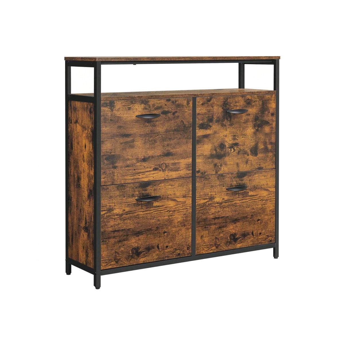 VASAGLE Rustic Shoe Cabinet with 4 Rocker Doors - Bronze
