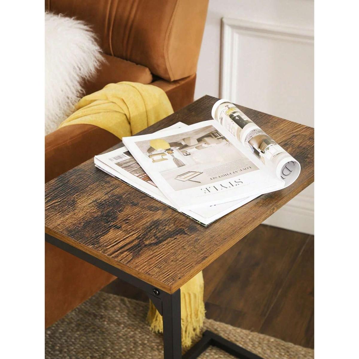 This small side table is perfect for your laptop, making it ideal for use in the bedroom, living room, or while working in bed or on the sofa. With a rustic brown surface and a black steel half frame, it easily slides under your sofa and adds a stylish touch for eating or working. Setting it up is a breeze with numbered parts and easy-to-follow instructions, allowing you to prepare for online meetings in minutes. To prevent scratching your floor, the table features adjustable feet that compensate for unevenness, making it a flexible addition to your home office or for enjoying breakfast in bed.