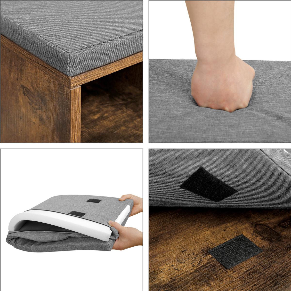 Step up your hallway organisation with this oak-finish shoe bench, designed for both comfort and versatility. At 104 x 30 x 48 cm, it offers ten spacious compartments, each 30 cm deep-perfect for trainers, flats, and even boots, thanks to adjustable or removable dividers in the side sections. The robust particleboard frame supports up to 150 kg, so you can sit comfortably on the foam-cushioned seat while slipping on your shoes. The cushion s linenette cover is removable and easy to clean, secured with handy hook-and-loop fasteners. For even more flexibility, simply remove the cushion and stand the unit upright to use as a display shelf. With numbered parts and clear instructions, assembly is quick and hassle-free, making this shoe rack a smart, stylish addition to any entrance.
