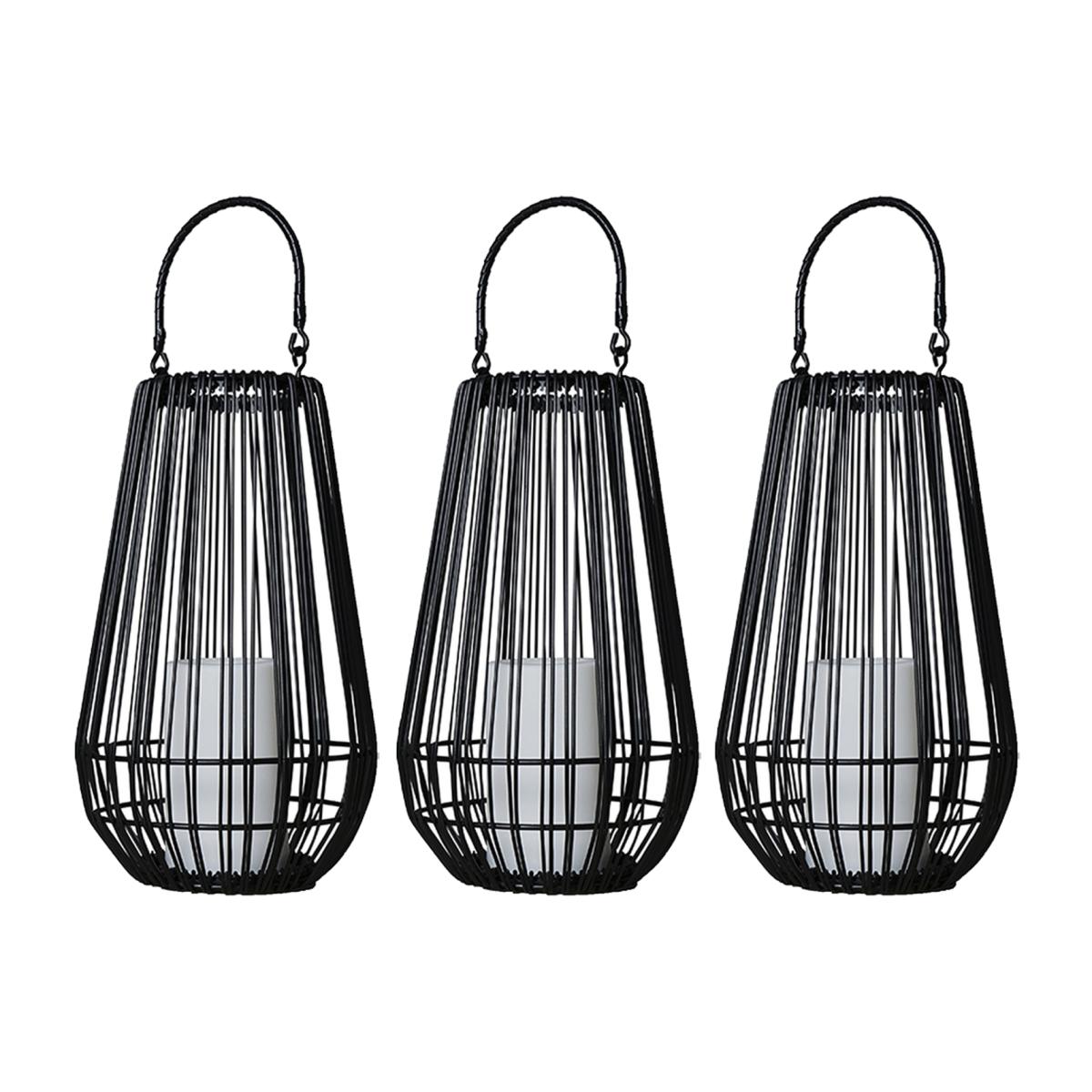 The pack of 3 IP44 Vase Baskets with Battery Operated LED Candles are an absolute game changer anywhere you're inspired to put them. With a simple, elegant design they lend themselves to several different design styles, whether you're looking to add to your bohemian, Japandi or jungle-centric home, they're a brilliant bit of mood lighting. Indoor or out!Indoor outdoor versatility, mood lighting all around!Matte black basket design to add that bohemian, natural feel to your home. Each LED candle has 3 settings on, off anda 5-hour timer (for those of us who always forget!). IIP44-rated perfect for a leave-out-all-the-time garden accessory or even to make those long soaks in the tub extra special. With each lamp measuring 240mm x 160mm, they're easy to cart about and fit just about anywhere.