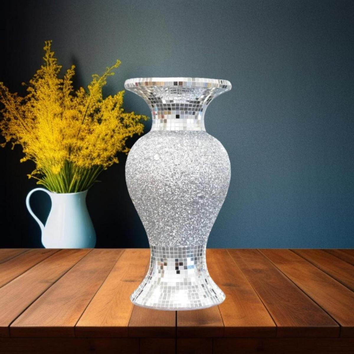 Vase Silver White Vase Statue Sparkle Ornament Crushed Diamond - Silver