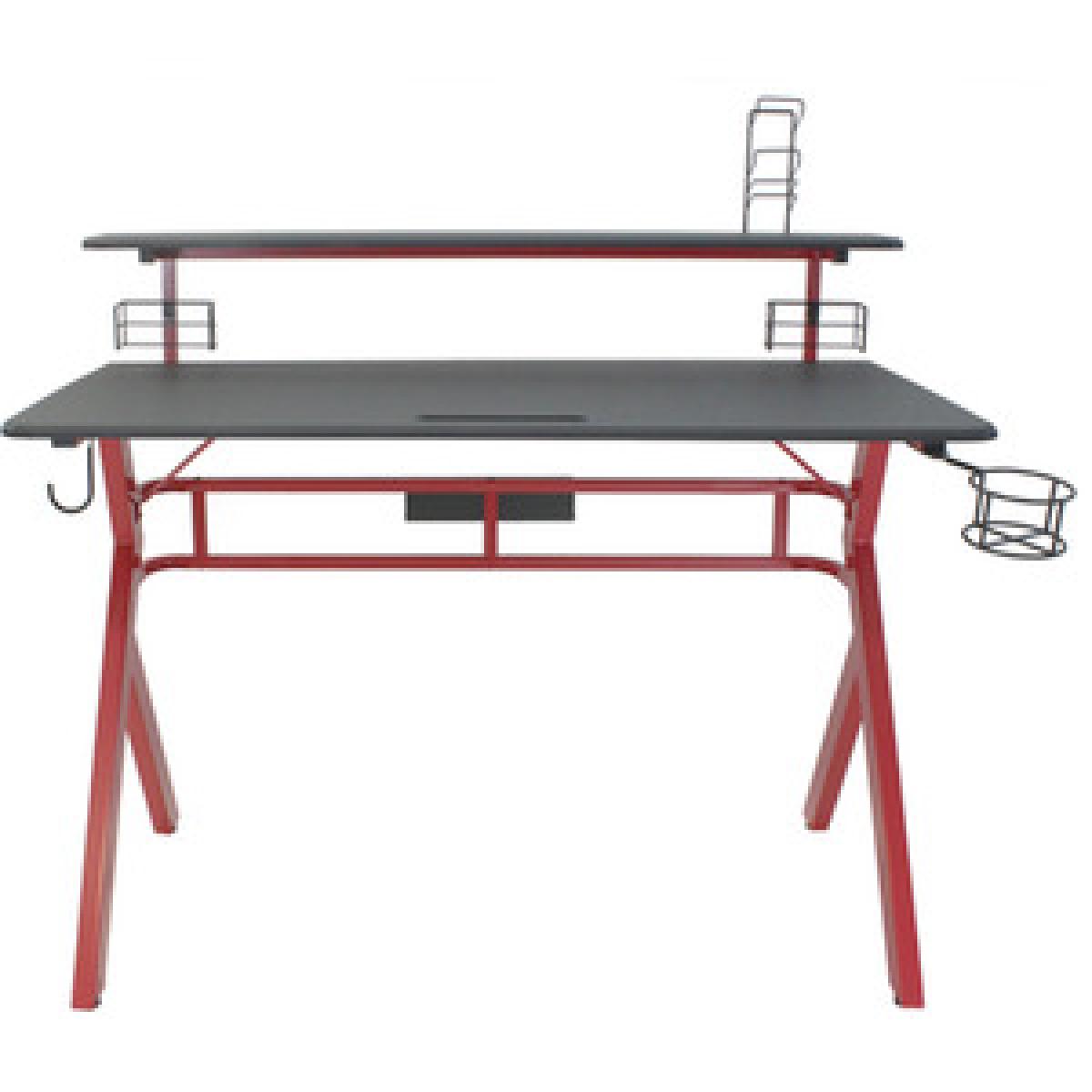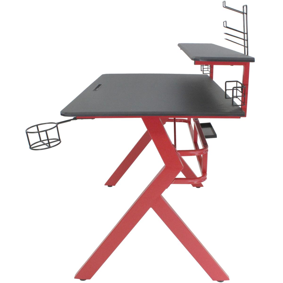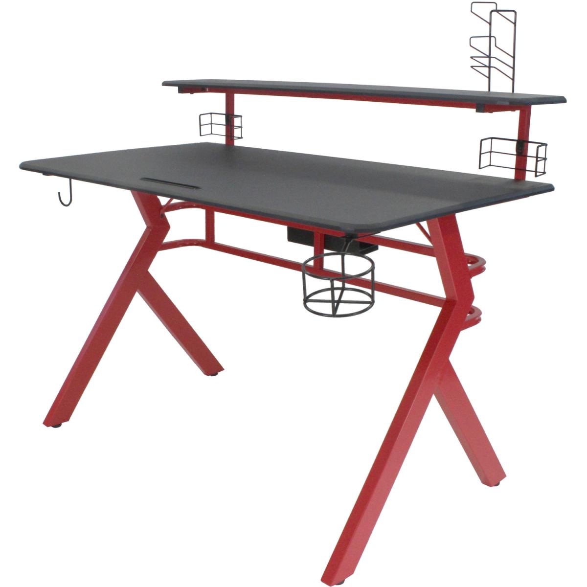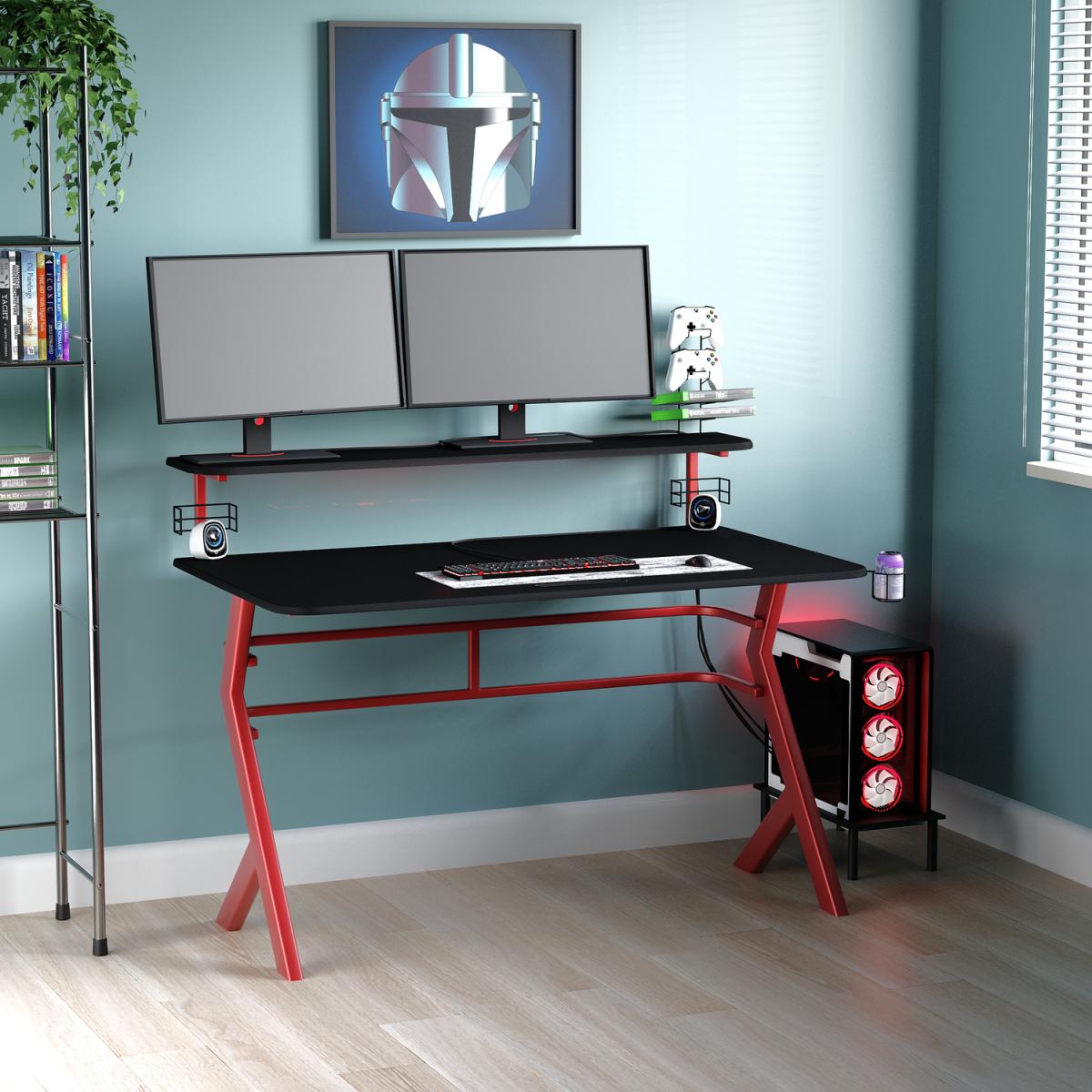 Take your Gaming room to a whole new level. A stunning mix of style and function the Vatal Gaming Desk offers the perfect blend of visual ascetic and ergonomic practicability. The high-level shelf raises your monitors to a more natural level reducing stress on your neck and shoulders. Drinks, Games and Controller holders are all included in the accessory kit, which provides a clean practical way to store your most used items, whilst keeping them within arms reach. Unique to this desk is its speaker cages, providing a firm backing adding stability and support that fits most desk top speaks.