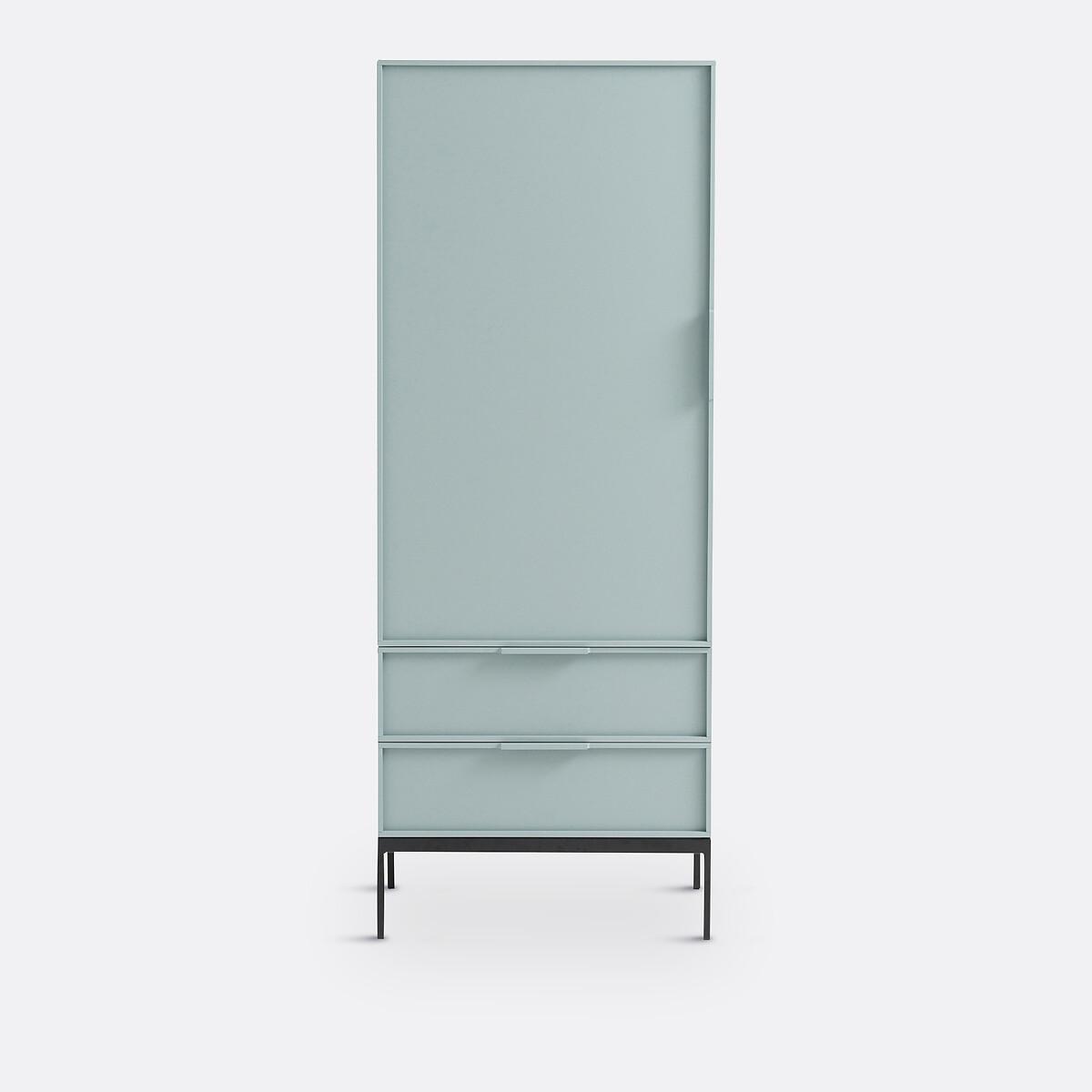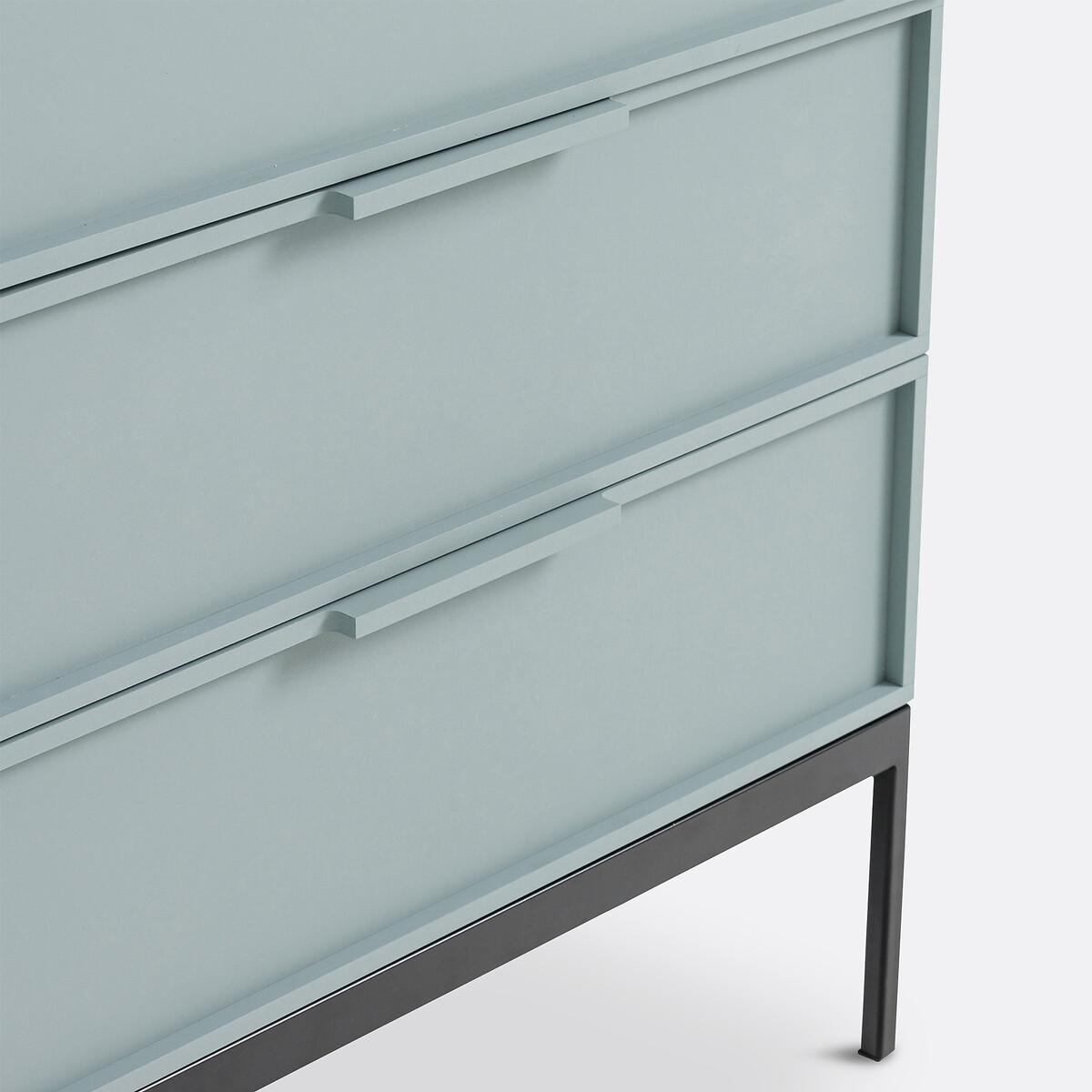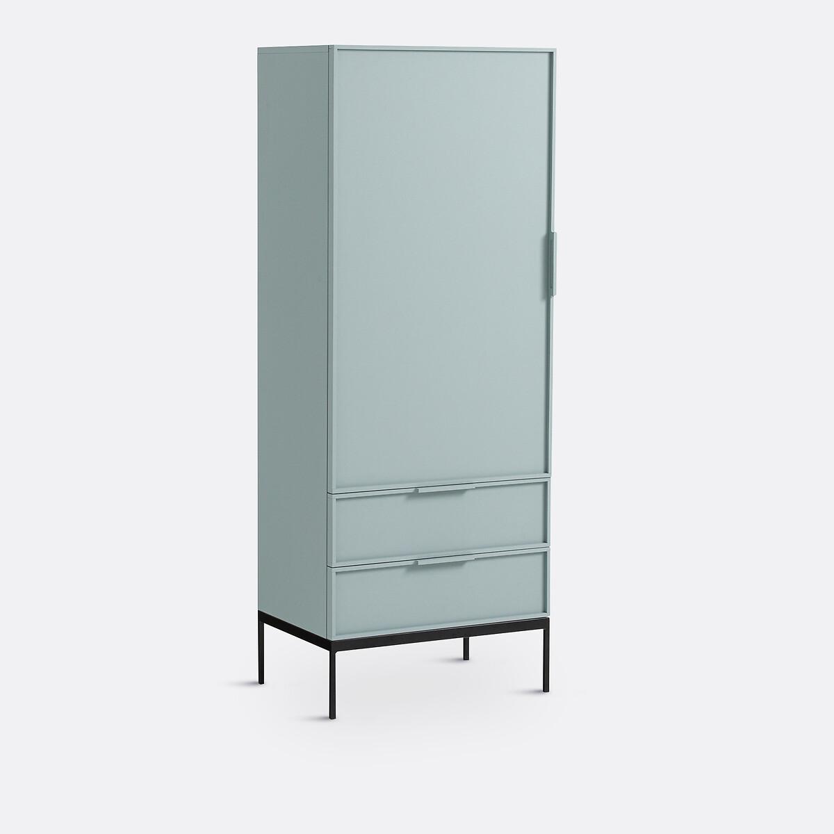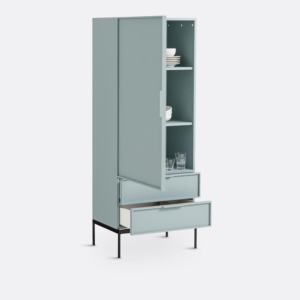 The Vati sideboard has a fresh colour. An elegant piece of storage furniture, its simple design combines aesthetics and practicality. It is made up of a spacious unit with two adjustable shelves,and 2 large drawers. Made in Europe, it is a creation of the designers at La Redoute Interiors. Product Details • Unit and door in blue FSC® chipboard, water-based paint with matte finish and high-density panel base • 2 removable shelves, adjustable in height • Soft closing door • Black steel baseDimensions. Overall • Width: 66cm • Height: 173.7cm • Depth: 45cm. Delivery: • Assembly required. Available for home delivery. Note! Please check that all access points are large enough to accommodate your delivery (doors, stairs, lifts). • Made in Europe. • WOOD FROM SUSTAINABLY MANAGED FORESTS. FSC® certified wood comes from forests that are environmentally, socially and economically well managed. Dimensions and weight of parcel3 parcels • L71 x H24 x D47cm. 7.45kg • L174 x H9 x D50cm. 32.45kg • L138 x H12 x D74cm. 23.45kg