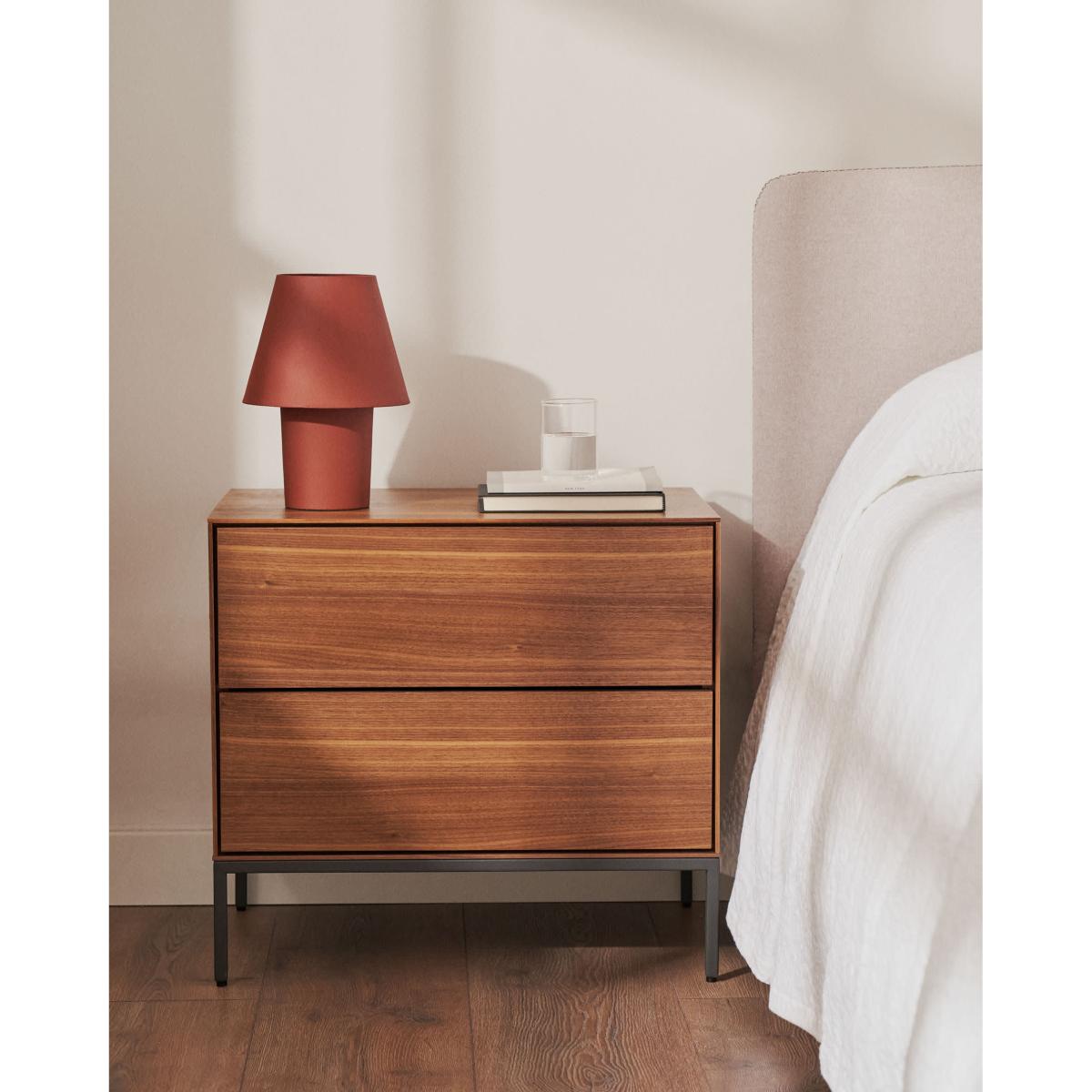 I’m a fan of this walnut-front bedside table for its clean lines and mix of warm veneer with matte black legs. It works well in Scandi, mid-century and industrial schemes, adding texture without overwhelming a small room. Styling tip: keep the top simple - perhaps a slim metal table lamp, a small ceramic pot for greenery and a neat stack of books on a tray. Inside the drawers you can tuck away chargers or bedtime essentials, so the surface stays uncluttered and the overall look remains calm and inviting.
