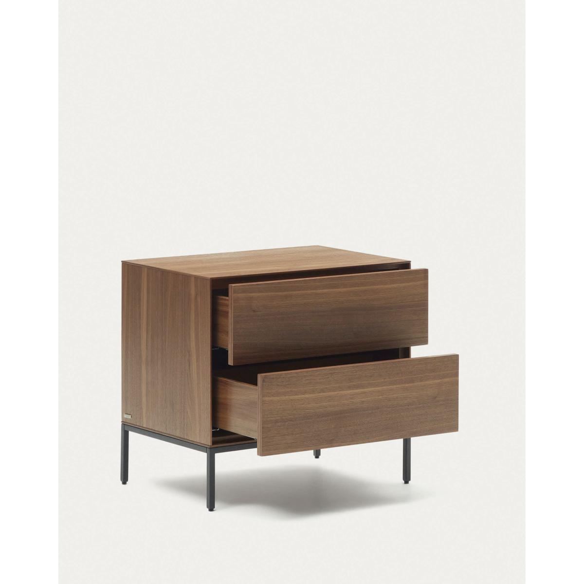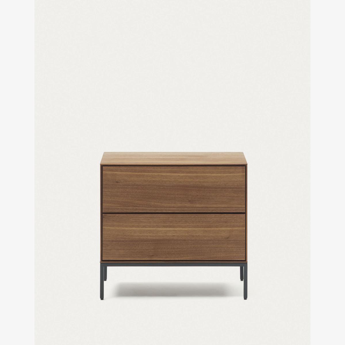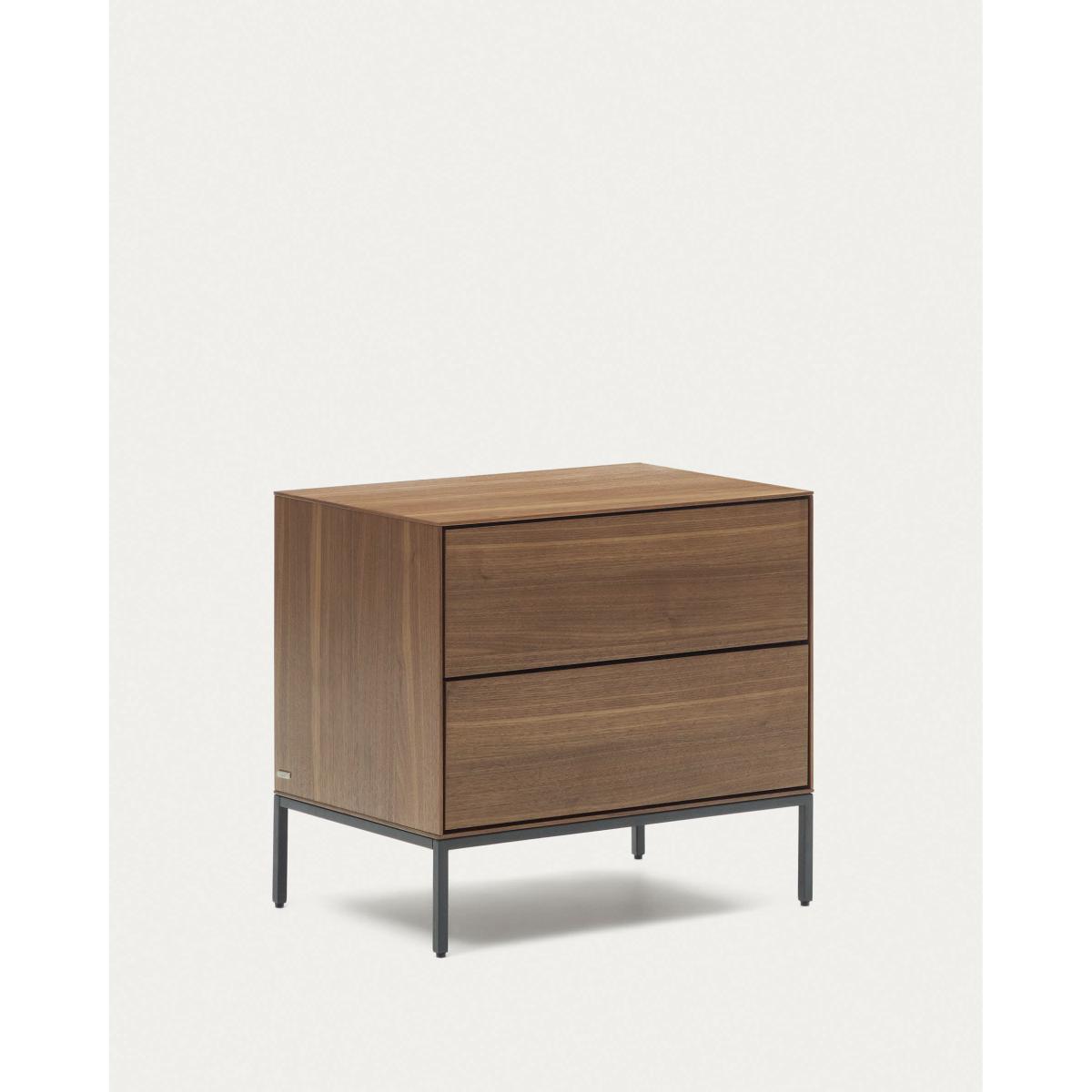 Vedrana beside table, 2 walnut veneer drawers, and black steel legs, 60 x 55 cm