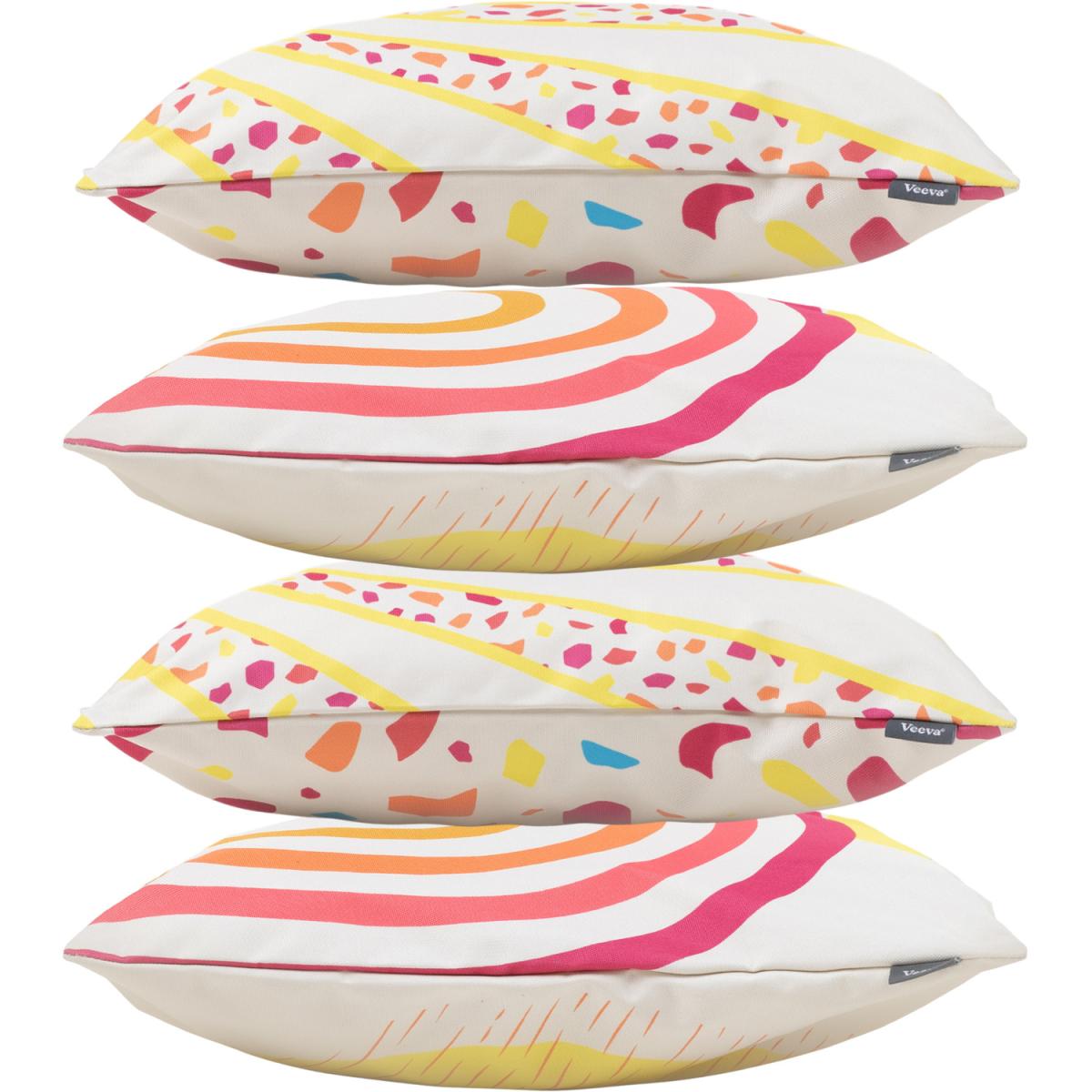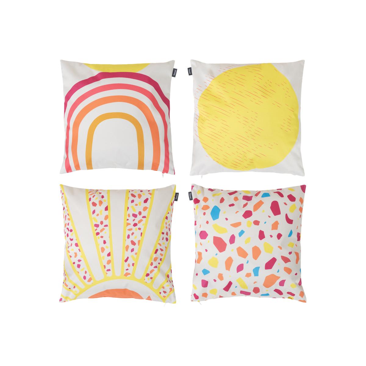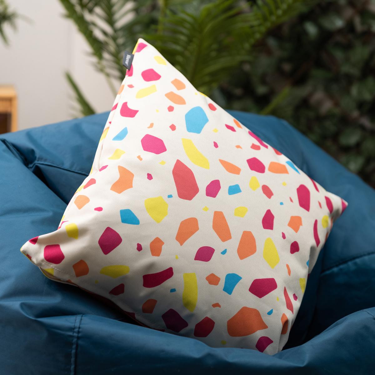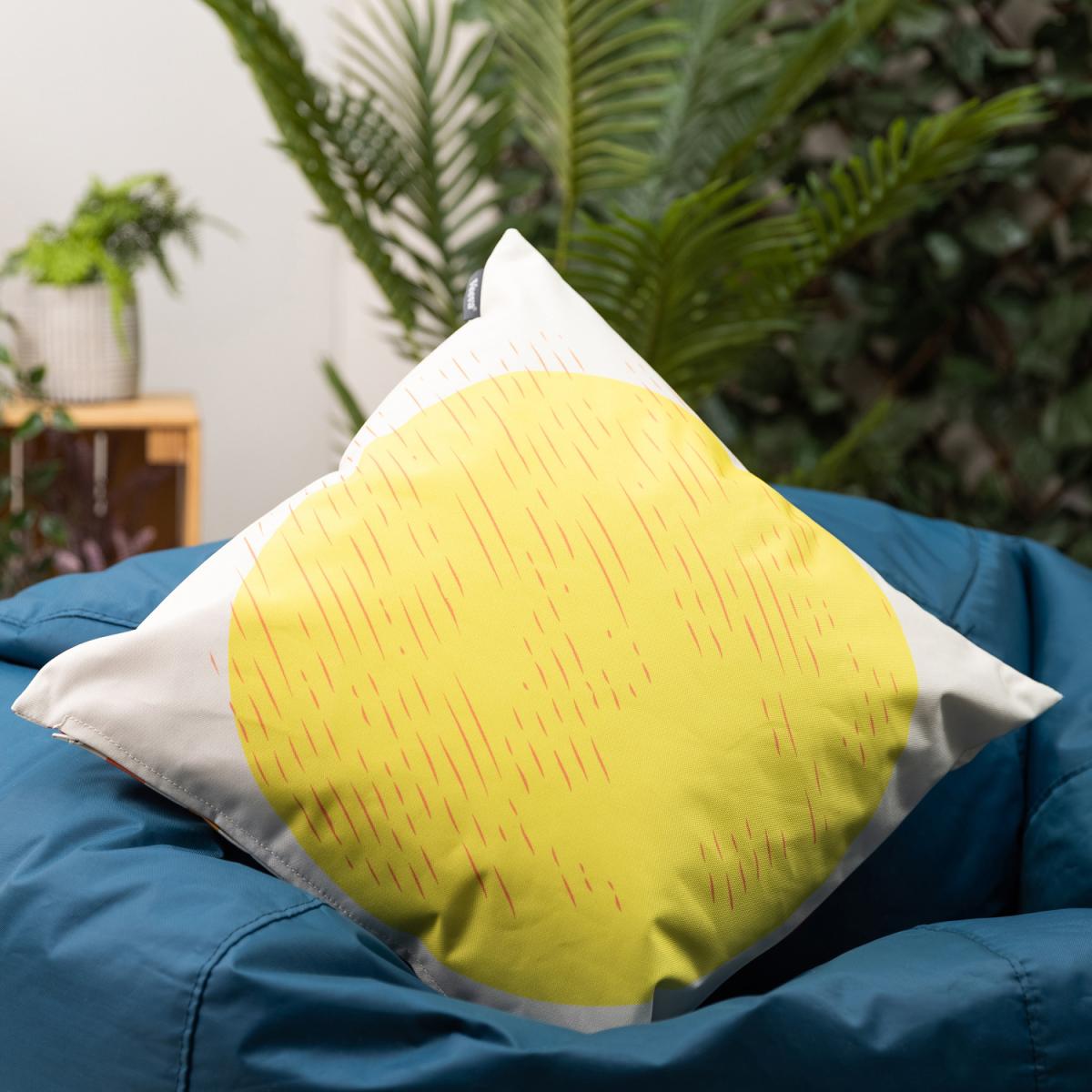 Create a happy space to enjoy good vibes with this fun Veeva sunshine cushion. The reversible design allows you to switch up your decor up with ease. Great for customising the look and feel of any space, this cushion is suitable for both in and outdoor use. It is designed to withstand showers and spills with its water-resistant fabric and hidden zip closure. Complete with a highly breathable inner, these cushions are incredibly soft, shape retaining and supportive. Mix and match colours and patterns to create a sunny sanctuary that works for your space.