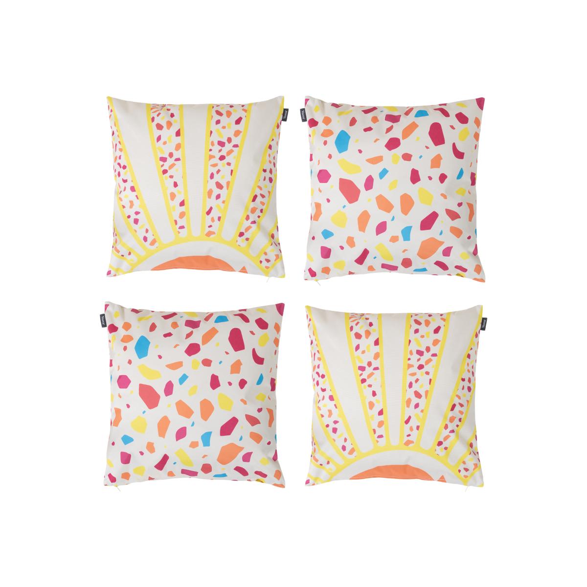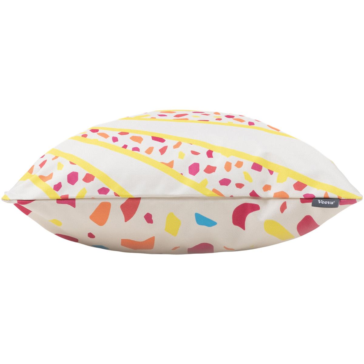 Create a happy space to enjoy good vibes with this fun Veeva sunshine cushion. The reversible design allows you to switch up your decor up with ease. Great for customising the look and feel of any space, this cushion is suitable for both in and outdoor use. It is designed to withstand showers and spills with its water-resistant fabric and hidden zip closure. Complete with a highly breathable inner, these cushions are incredibly soft, shape retaining and supportive. Mix and match colours and patterns to create a sunny sanctuary that works for your space.