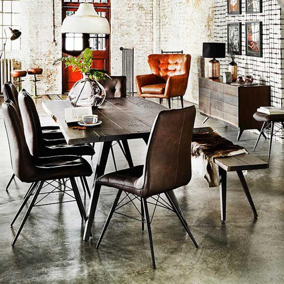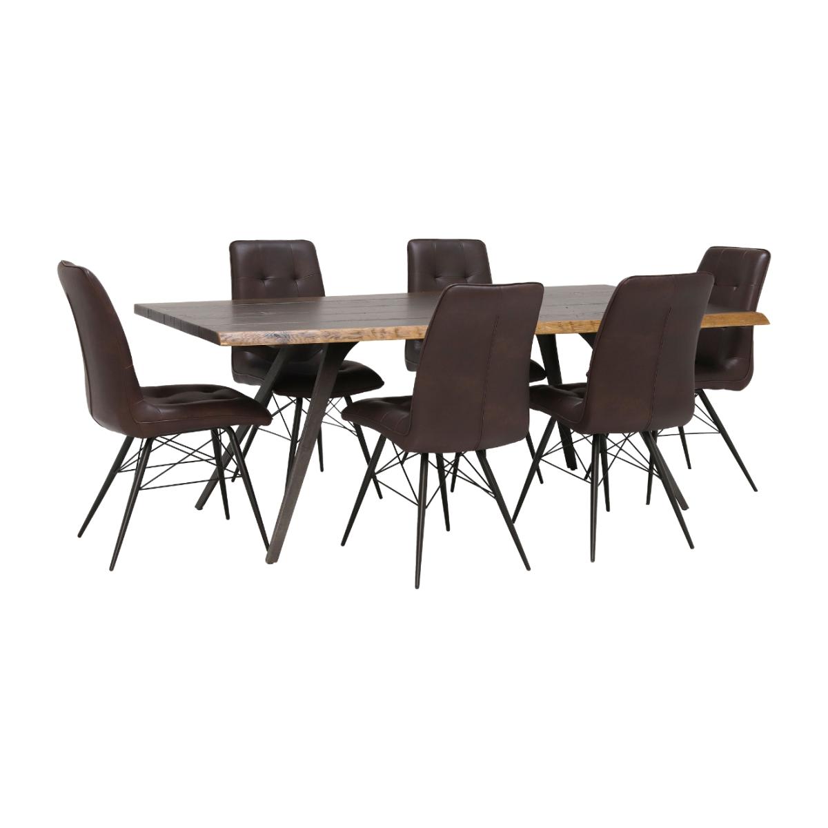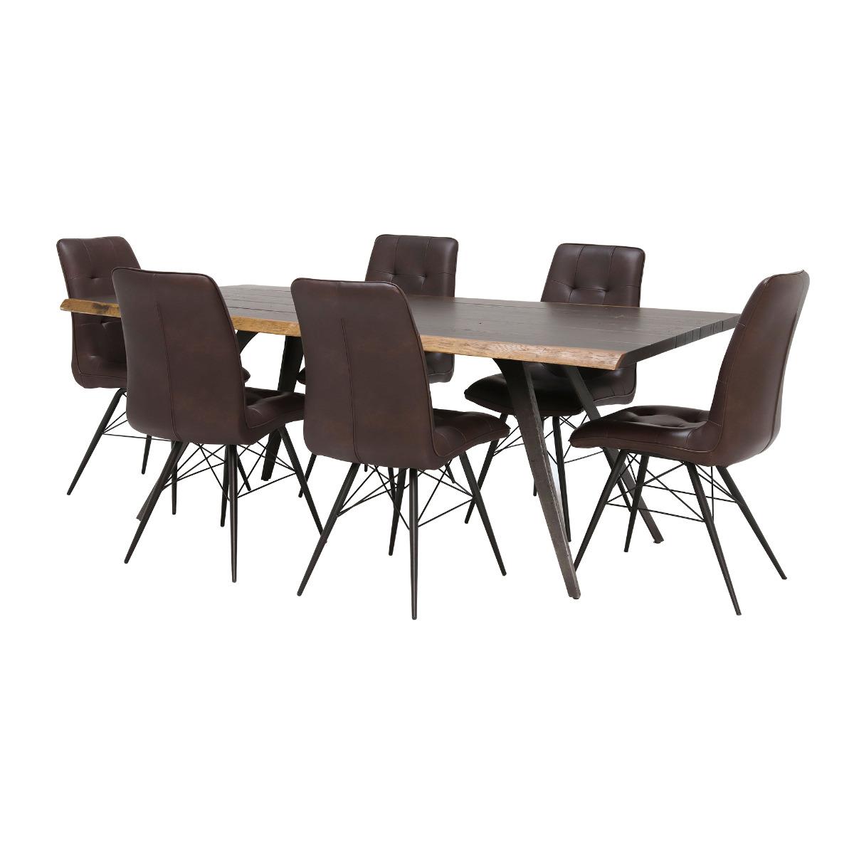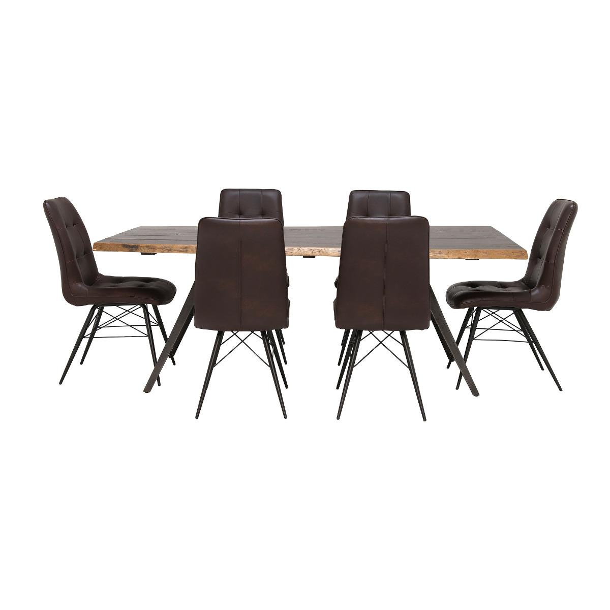 Vega 200cm Dining Table & 6 Hix Chairs, Brown Wood | Barker & Stonehouse