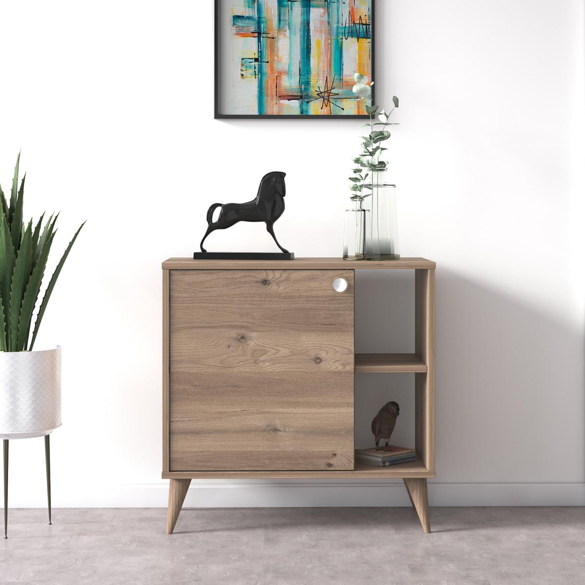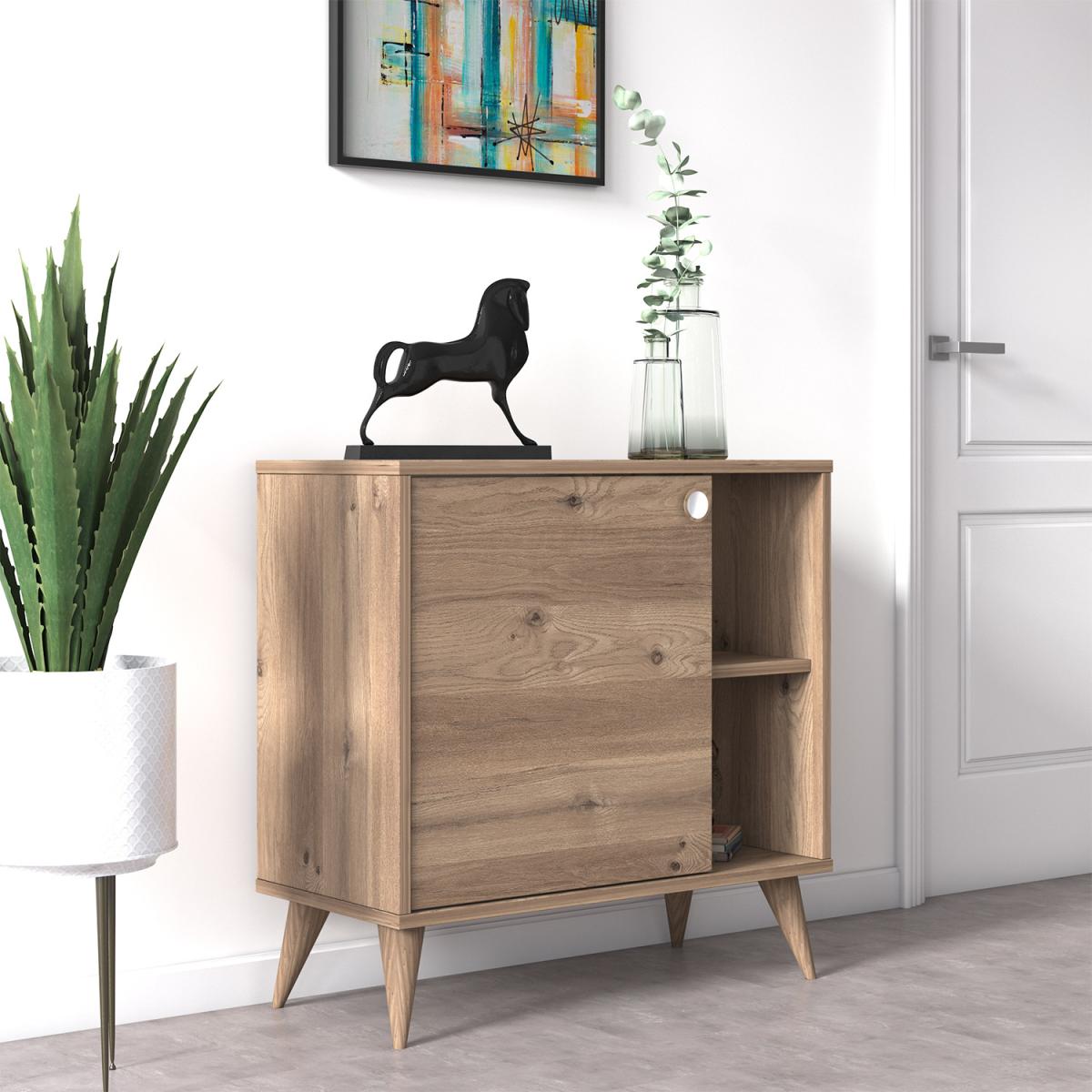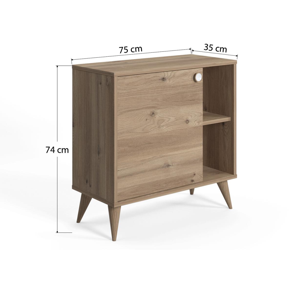 Ruumstore Vega Wide Storage Cabinet, 74cm lenght with 1-door Organizer it creates extra storage areas in narrow places. It is very easy to assemble with its detailed directions. It is a storage space that you can use as a cupboard, coffee table and a nightstand. Moreover, thanks to the ergonomic dimensions, you have no way to find a place in your home. Vega, which collects the functions that everyone needs in a single design, attracts attention with its stylish appearance. While opening room for the products you want to store with the lid cabinet, you can add color to your decoration with the shelf part. Moreover, Vega, which facilitates cleaning thanks to its high -foot structure, provides function to small houses. Stylish and efficient use for small spaces A simple and tiny tv bench suitable even to the smallest rooms with the tall angled legs. The legs give a light airy look and make it easy to clean the floor underneath. Customer assembly required Our products have been shrinked on both sides as internally and externally to prevent the damages. All the packages have been quality tested. Accessories in the product images are for decoration purposes and are not included in the price.