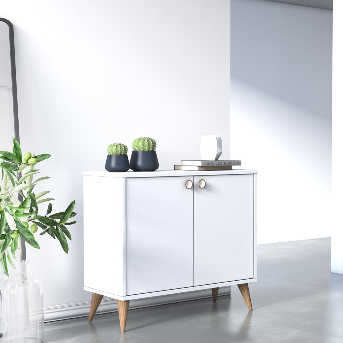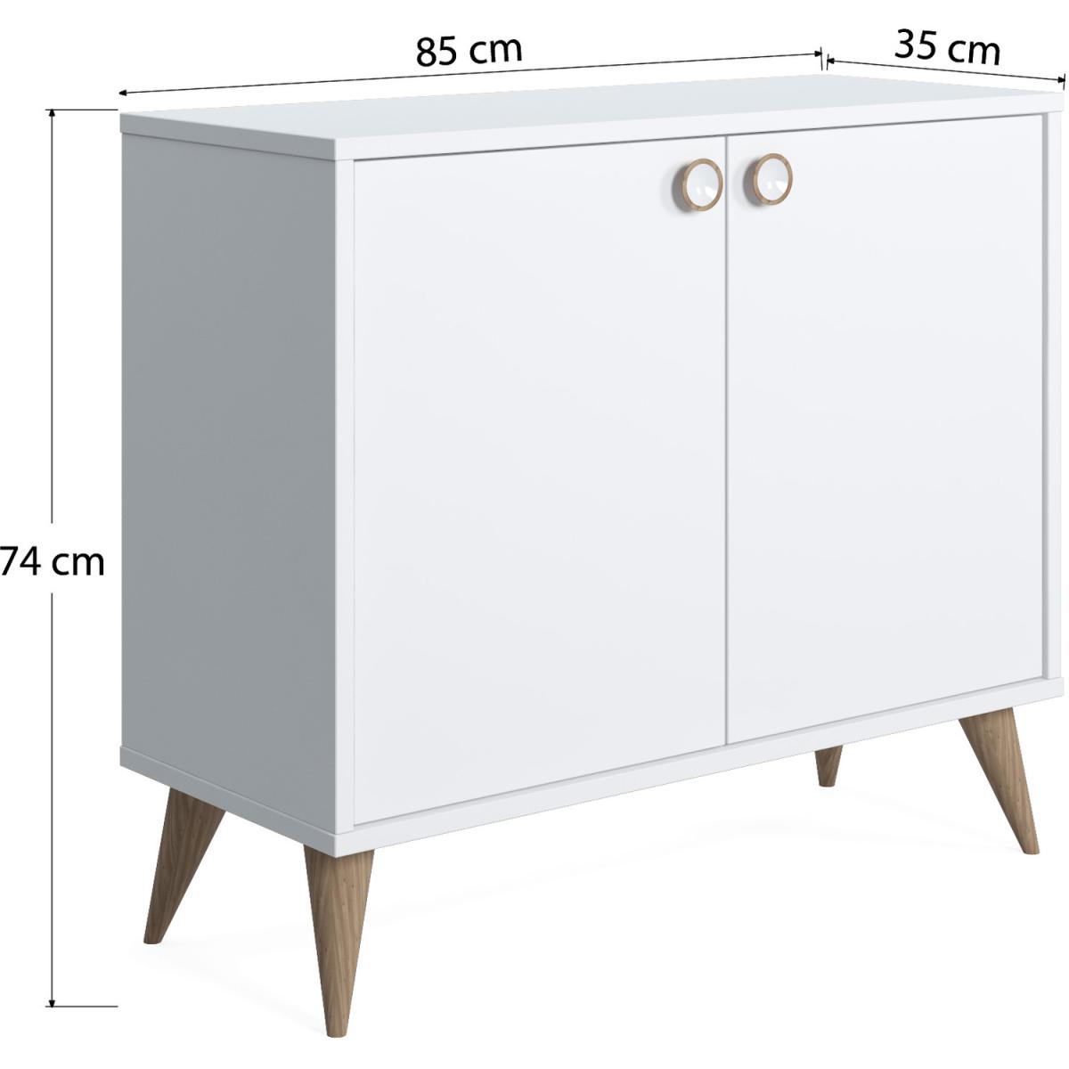 Ruumstore Vega 2 doors cabinet, 85*35*74 cm, opaque white, Cabinet with 2 Doors for extra storage in living room, entryway, hallway, office or kitchen. It has a easy assemble with minimum tools required. How about creating extra storage space for your stuff while making room for elegance in your living room? For this, you only need the right product to evaluate an area in a corner of your home. Standing out with its stylish and useful design, Vega Two Door Cabinet is both a functional and stylish product for the things you want to keep. You can turn the most beautiful corner of your home into a stylish storage space with its large interior volume.