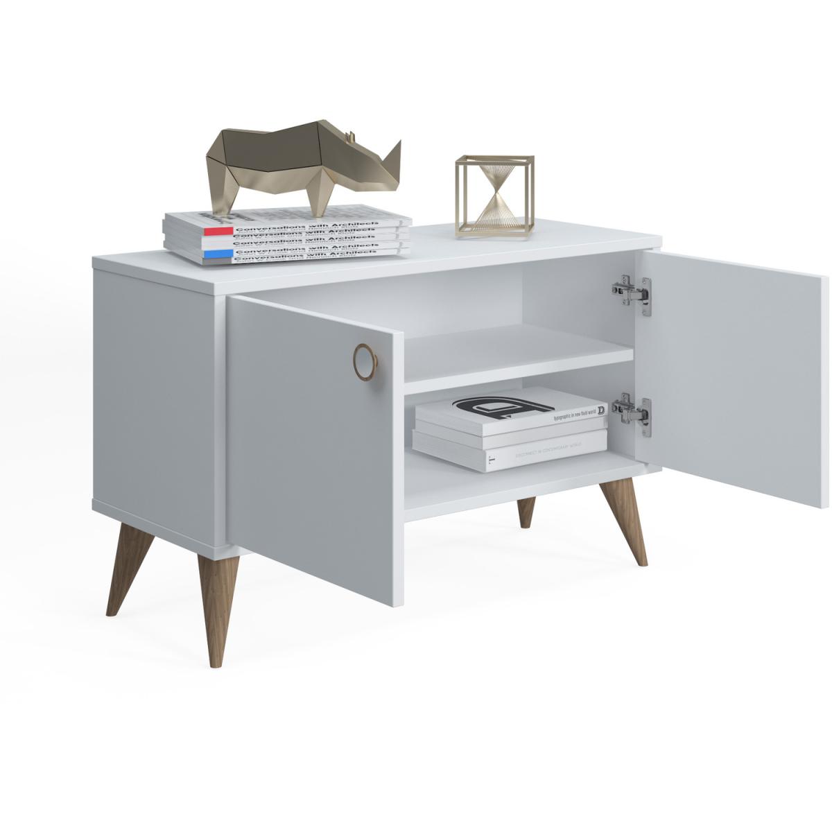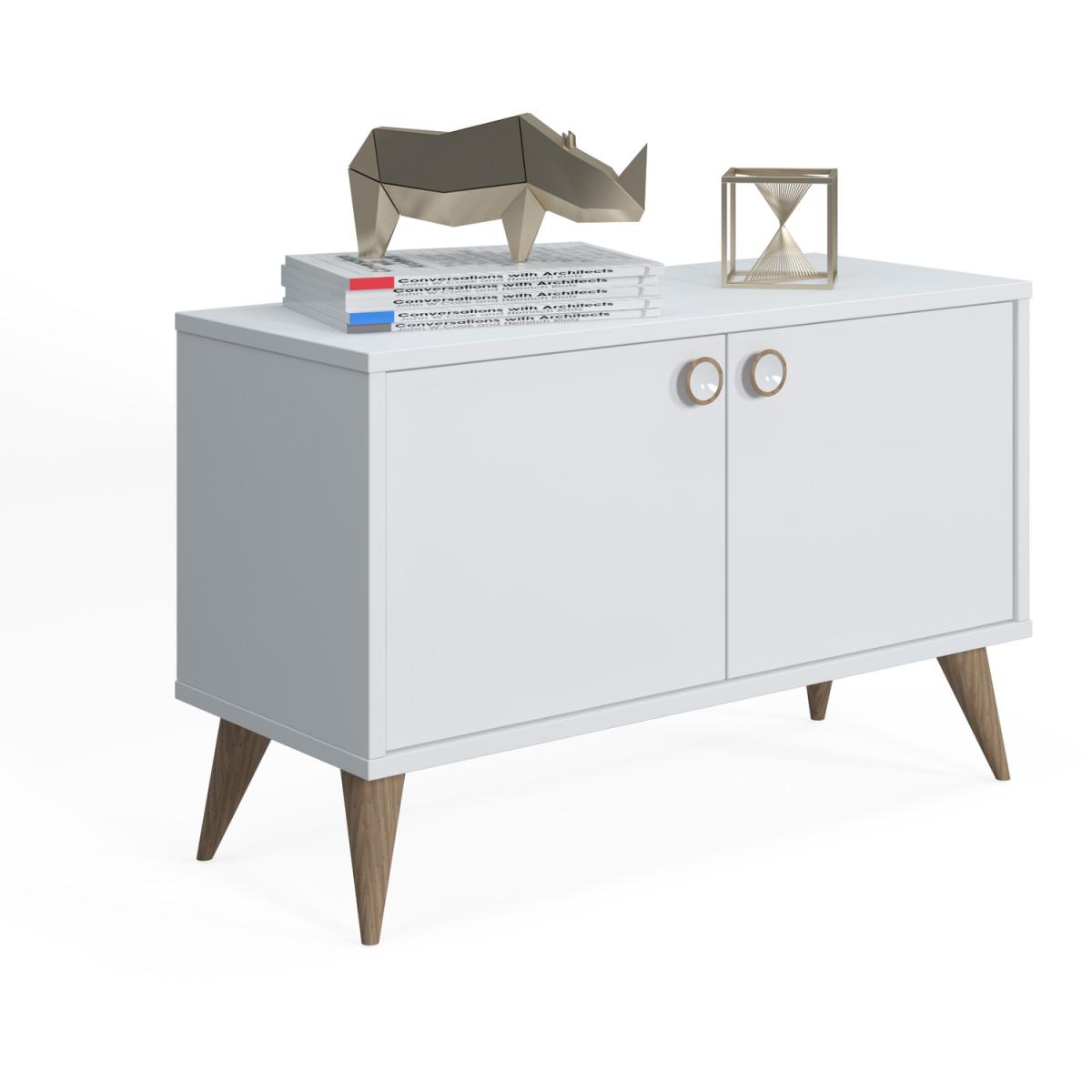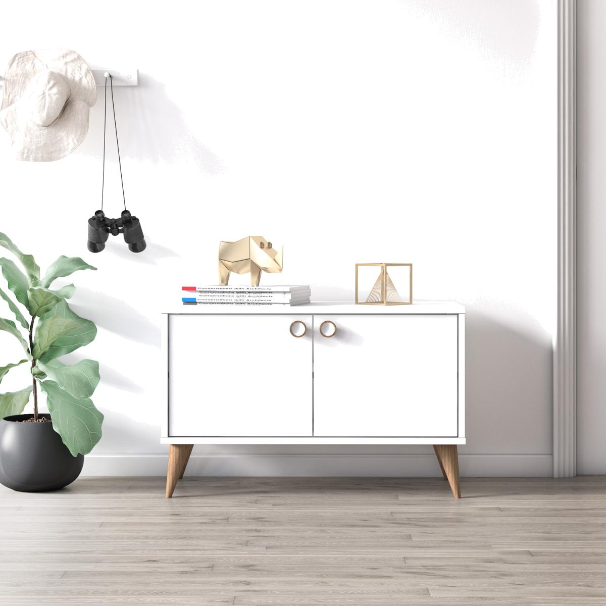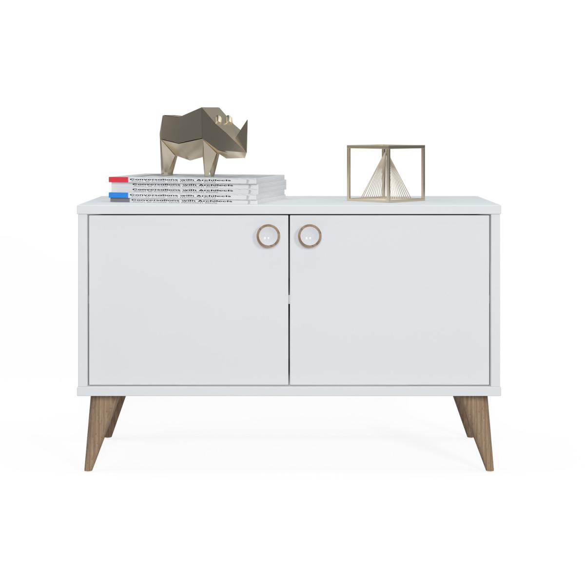 Ruumstore Vega Low Cabinet with 2 Doors, 85*35*53 cm, natural oak color, low cabinet with 2 Doors for extra storage in living room, entryway, hallway, office or kitchen. It has a easy assemble with minimum tools required. You don't need huge storage areas to store your stuff. You just need the right product to evaluate an area in a corner of your home. Standing out with its stylish and useful design, Vega Two Door Cabinet is both a functional and stylish product for the things you want to keep. You can turn the most beautiful corner of your home into a stylish storage space with its large interior volume.