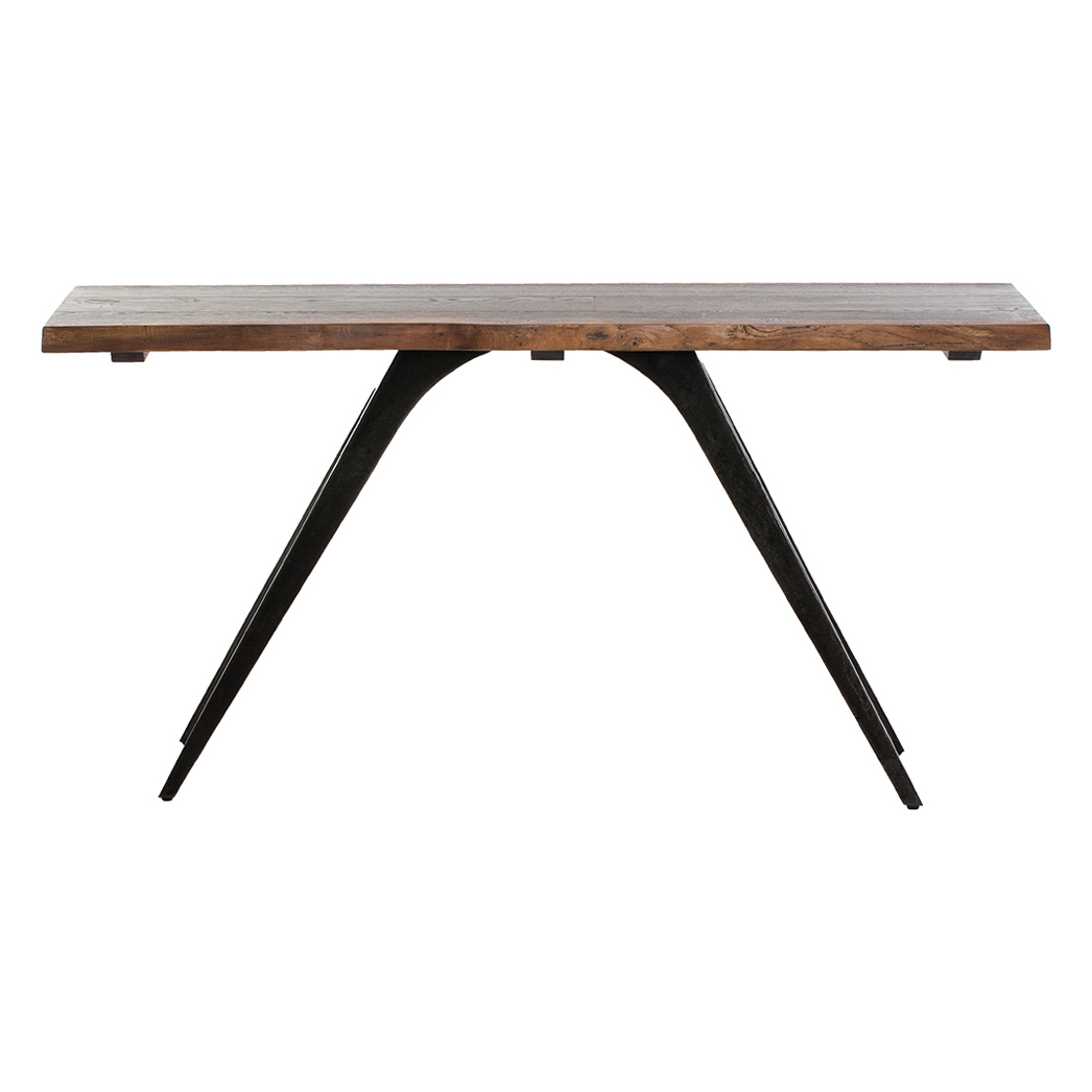 A modern range of furniture with clean lines and a natural, organic spirit. Inspired by mid-twentieth century designers, in particular master craftsmen using natural forms and embracing the characteristics of solid hardwood combined with the raw cast iron legs. Please note: Solid wood is a natural material that adapts to the world around it. Small hairline cracks are an organic characteristic of seared oak and should not be seen as a flaw. Occasionally, larger cracks are supported by butterfly joints, adding to the Vega's unique appeal.
