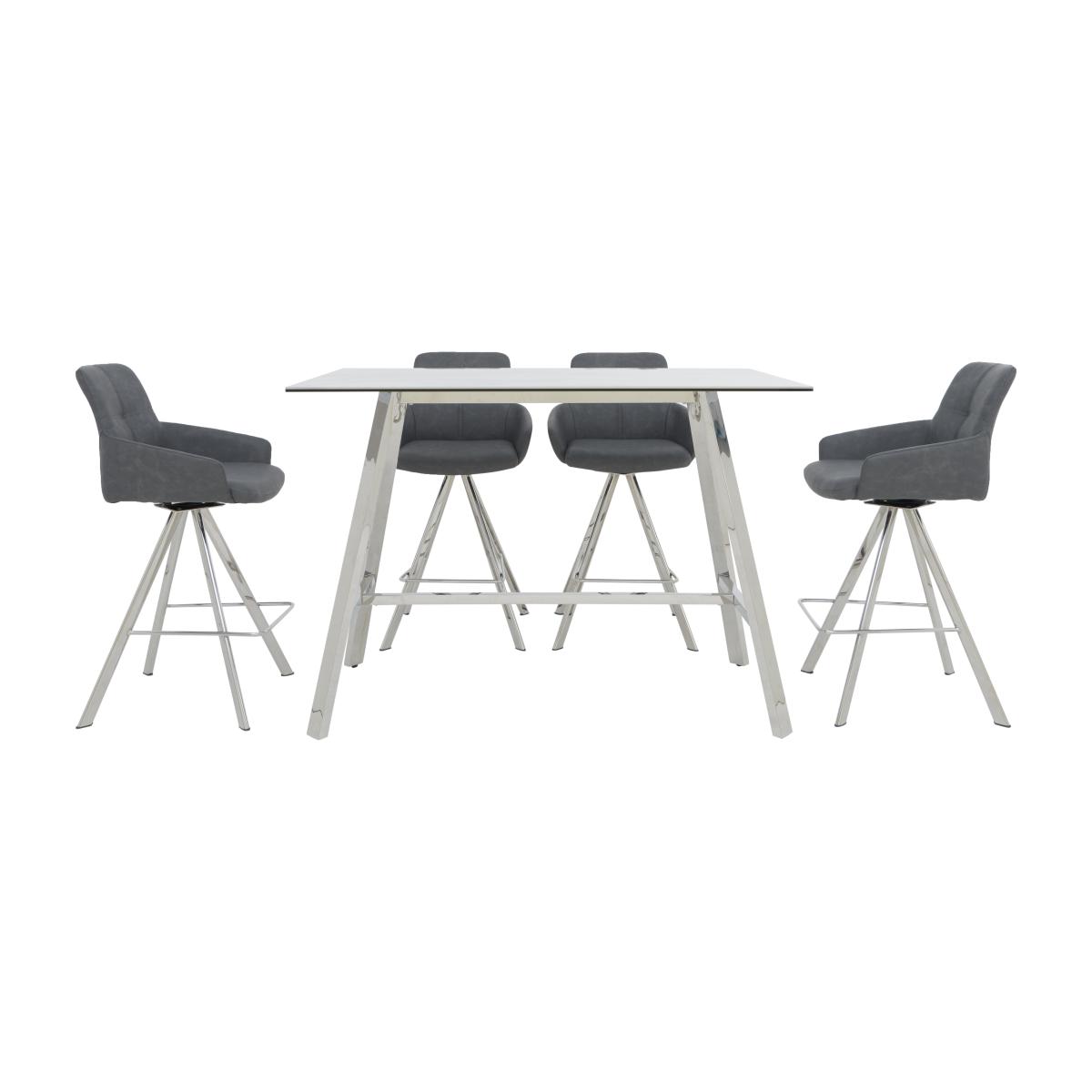The gorgeous marble-effect ceramic and polished stainless steel of the Vegas range epitomises modern glamour. This stunning range instantly brings a touch of class to any interior, and with a range of furniture to choose from you can enjoy its timeless beauty throughout your home. From dinner party-ready dining sets to a wonderfully stylish yet practical shelving unit, this range is both beautiful and sturdy. The extending dining table steals the show, seating up to 10 people when fully extended, perfect for hosting in comfort and style. This gorgeous range is exclusive to Furniture Village. Whether it’s a dinner party or weekend breakfast, this stunning bar table set will rise to the occasion every time. A hardwearing table, comfy barstools and showstopping looks – what’s not to love?. Why you'll love it. Looking for beautiful furniture that lasts? Say hello to this bar table set. Contemporary glamorous style. Stunning yet durable marble-effect ceramic top. Polished stainless-steel legs. Due to the nature of the ceramic, every piece is entirely unique. Set includes 4 swivel barstools. Barstools are upholstered in sleek dark grey faux leather. Stylish stitched detailing. Swivel base with polished stainless steel legs. Exclusively at Furniture Village. This bar table set is part of the Vegas range. What you need to know. Ceramic is highly durable, and heat-, scratch- and chip-resistant. Each ceramic top is individually made and will have unique and distinctive characteristics. Bar stools are cushioned with foam for comfortable dining. Steel frame and legs. Love this style? You’ll love the Vegas extending dining table.